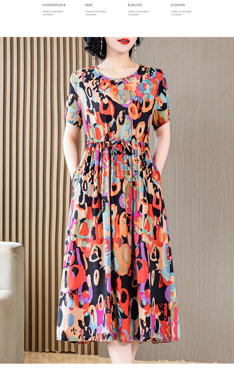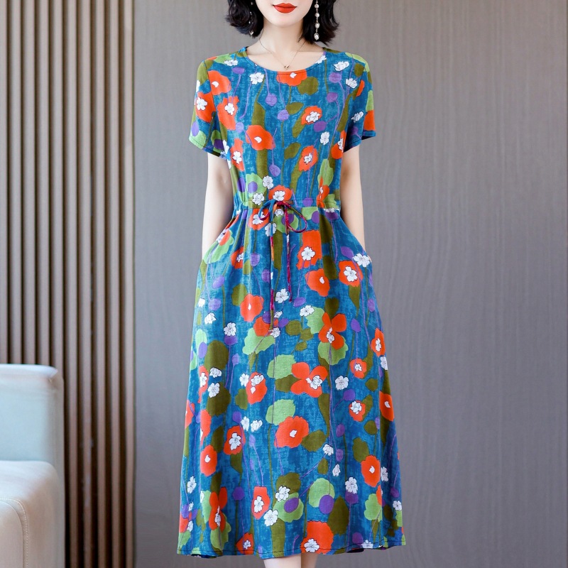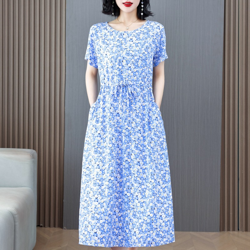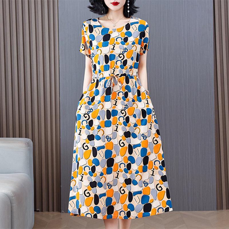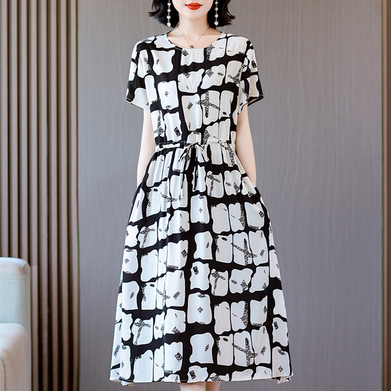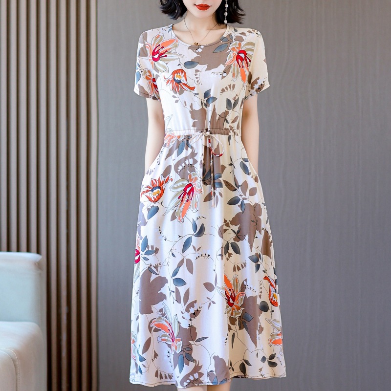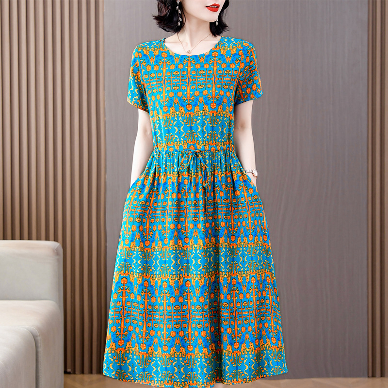 Платье из хлопкового шелка для женщин среднего и пожилого возраста 40-50 лет