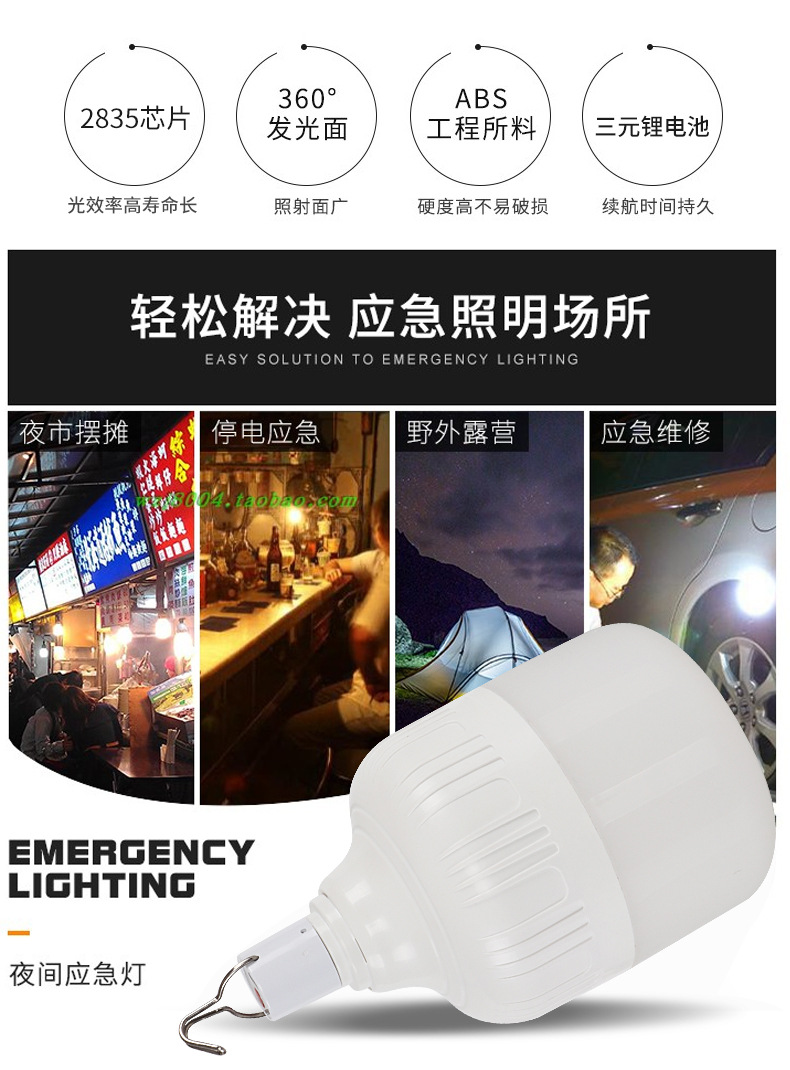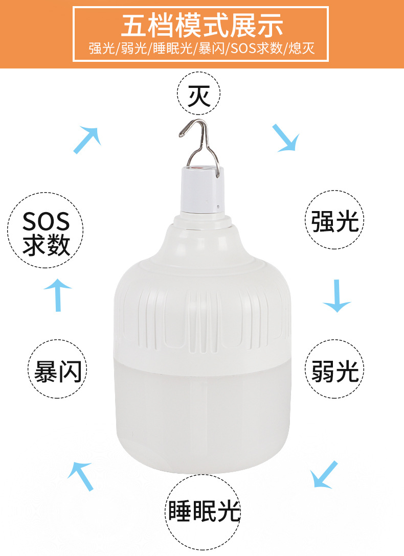 Перезаряжаемая лампа для кемпинга на открытом воздухе, сверхъяркий светодиодный фонарь высокой мощности с USB для аварийного освещения при отключении электроэнергии дома, для уличных торговли и рыбалки.