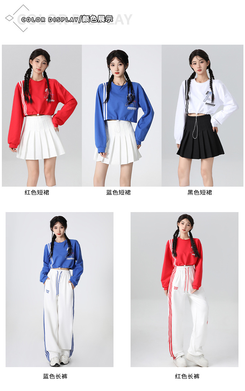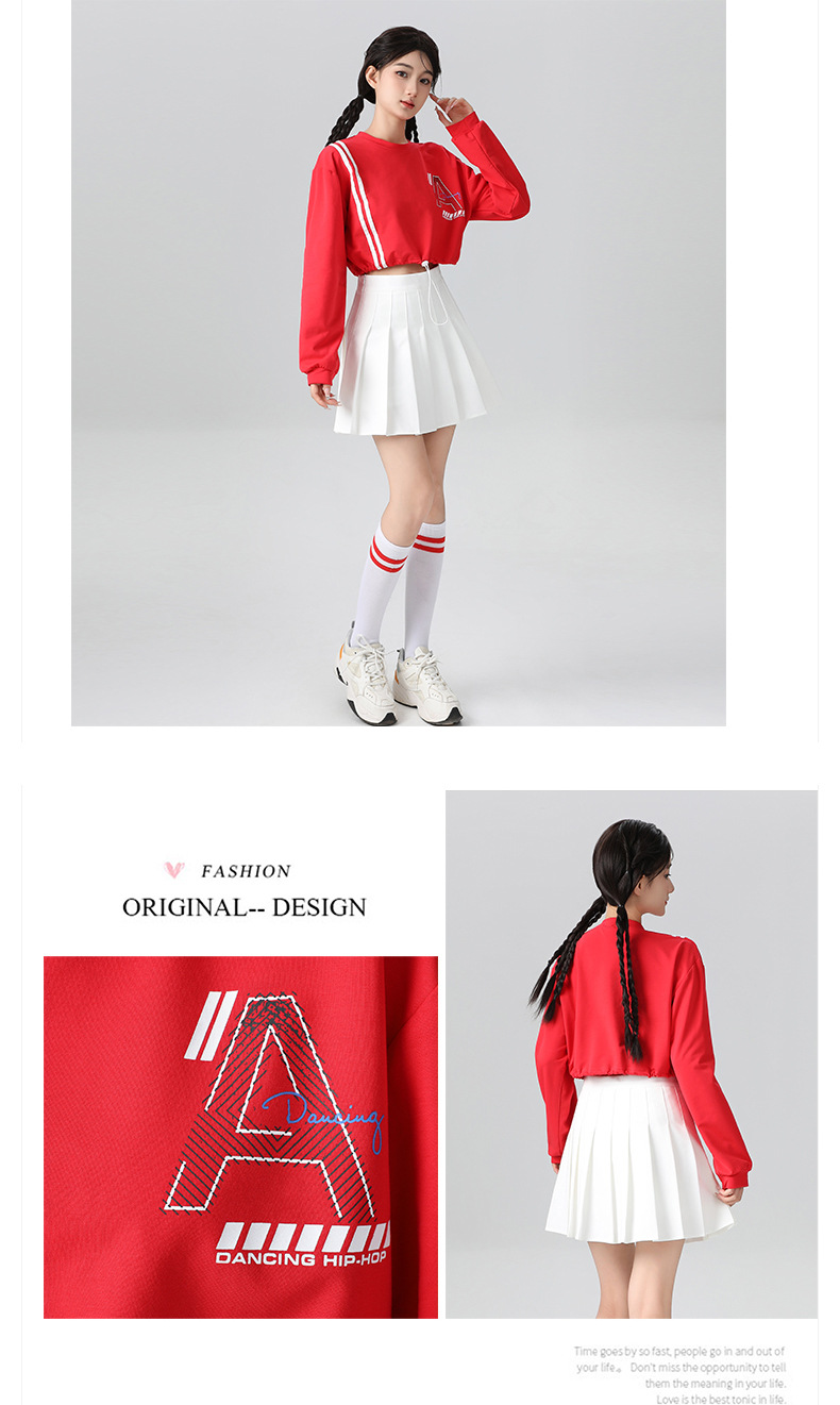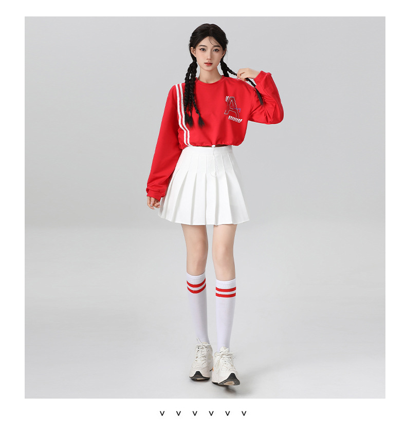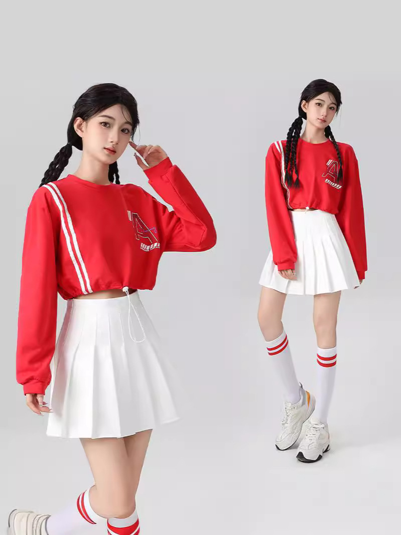 Корейская девушка, группа черлидинга, красная толстовка с длинными рукавами, плиссированная юбка, осенняя новая одежда для выступлений, комплект для спортивных встреч