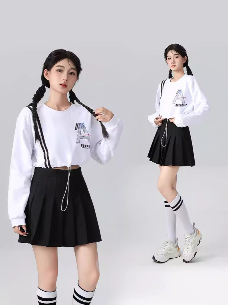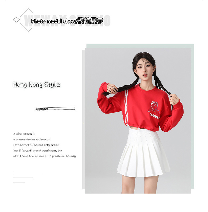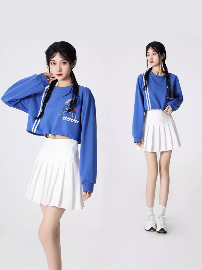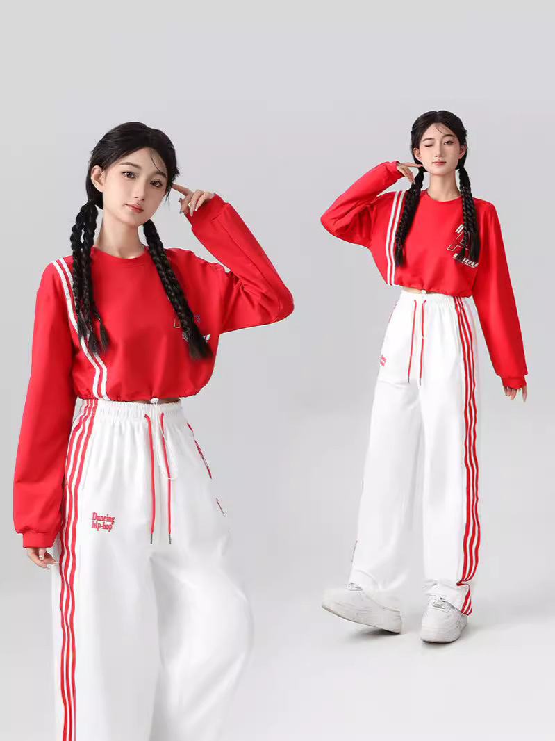 Корейская девушка, группа черлидинга, красная толстовка с длинными рукавами, плиссированная юбка, осенняя новая одежда для выступлений, комплект для спортивных встреч