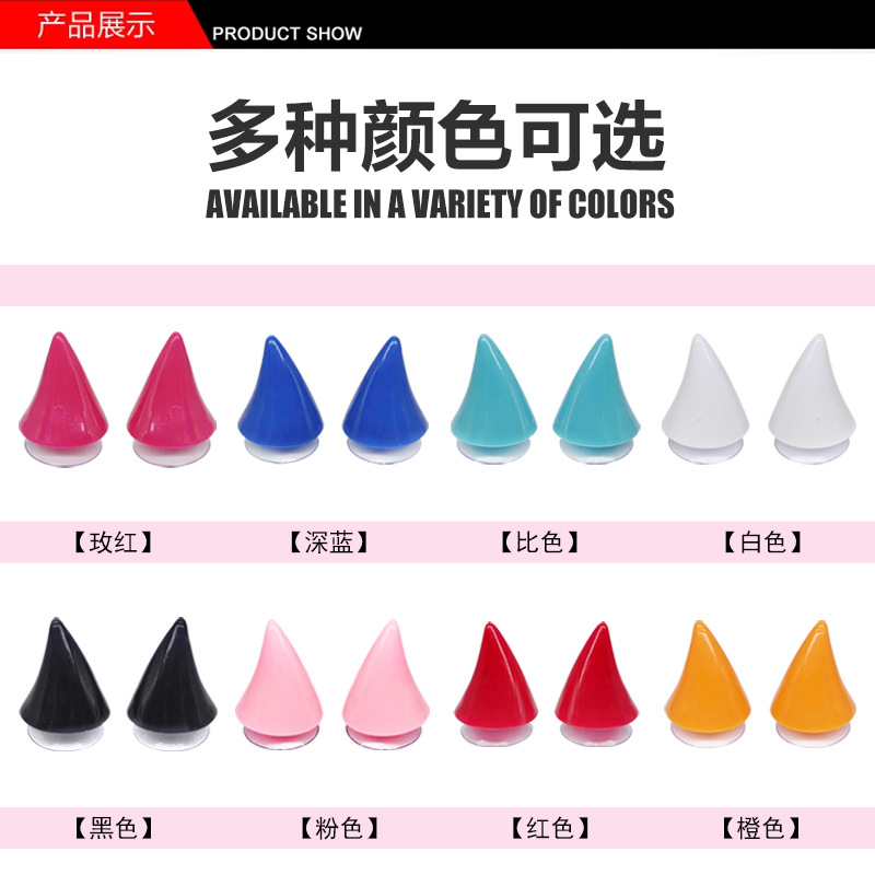 Пара черных рогов (с пленкой для усиления присоски); Пара красных рогов (с пленкой для усиления присоски); Пара розовых рогов (с пленкой для усиления присоски); Пара белых рогов (с пленкой для усиления присоски); Пара оранжевых рогов (с пленкой для усиления присоски); Пара цветных рогов (с усиленной пленкой присоски); Пара синих рогов (с пленкой для усиления присоски)