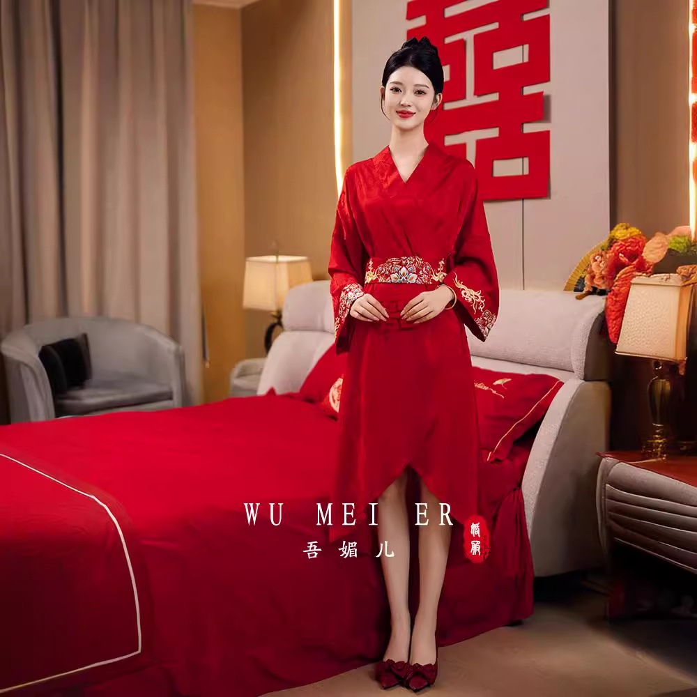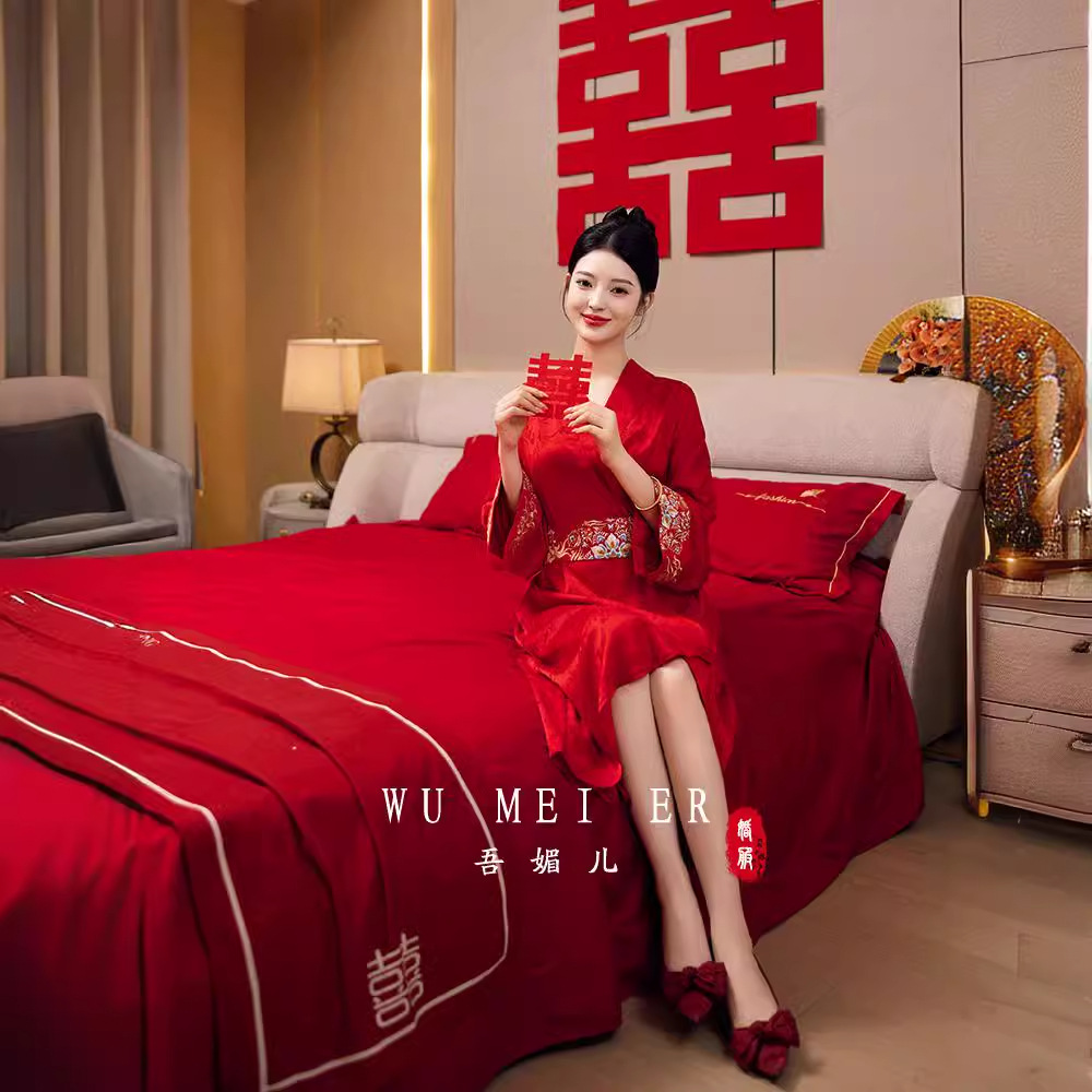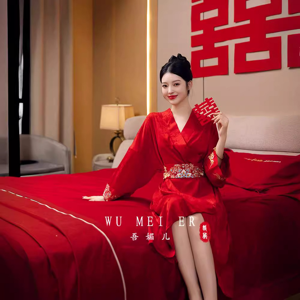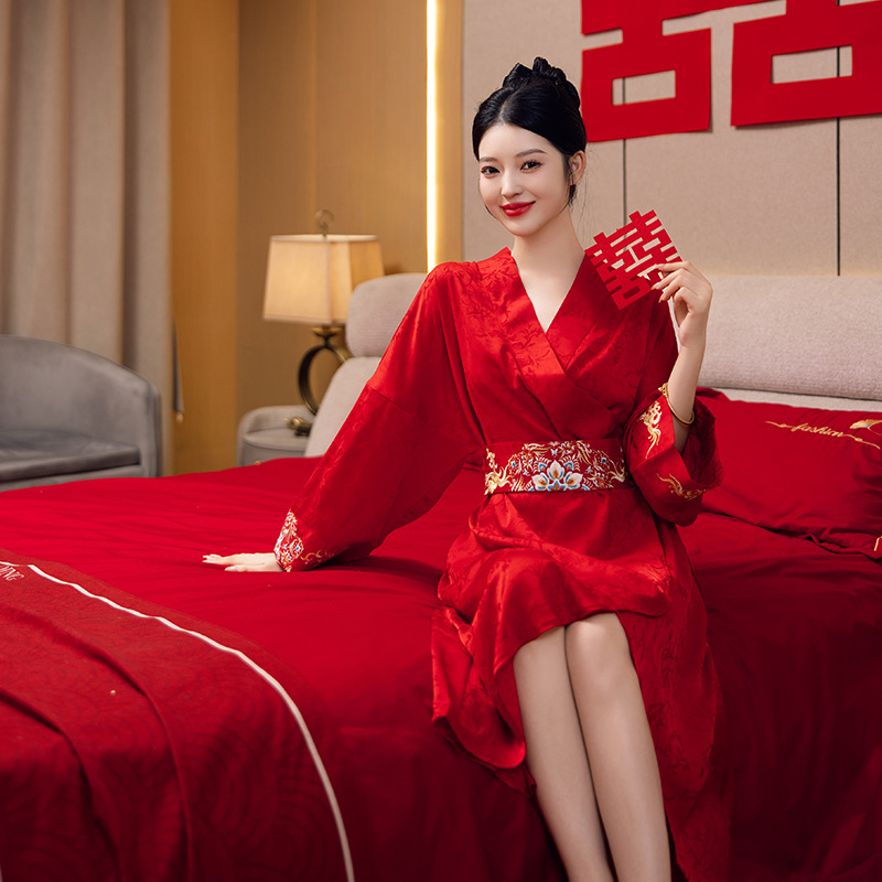 Свадебный утренний халат невесты невесты с вышивкой длинный халат свадебный год