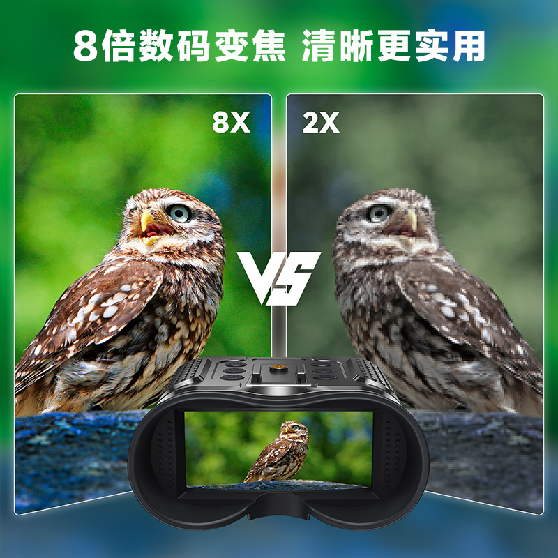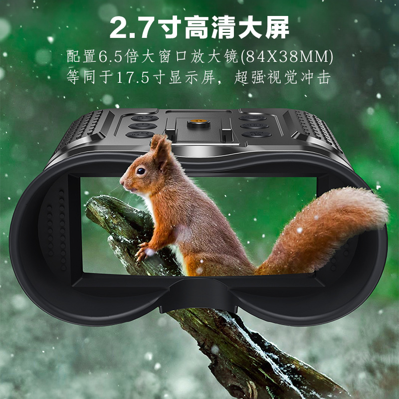超亮红外灯夜晚远距离观察,星光级SENSOR,弱光远距离观察,2.7寸640*480超高清TFT屏,6.5倍大视窗目镜放大镜,等同于17.5寸显示屏观看,观察过程可拍照/录像