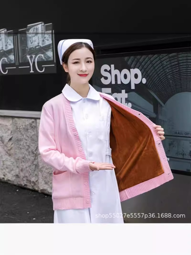 Медсестра свитер куртка кардиган женский бархат толстый теплый большой размер