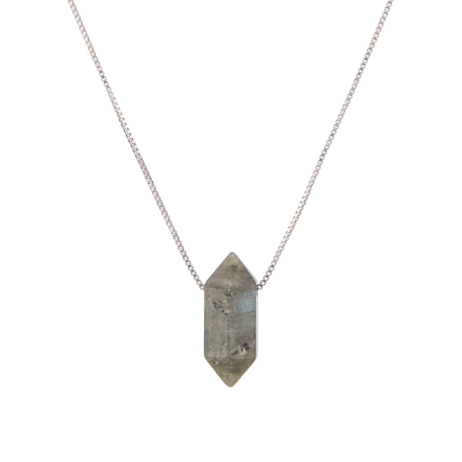 Натуральный камень двойной заостренный шестиугольник из нержавеющей стали Регулируемый кулон ожерелье ключицы цепи женские украшения