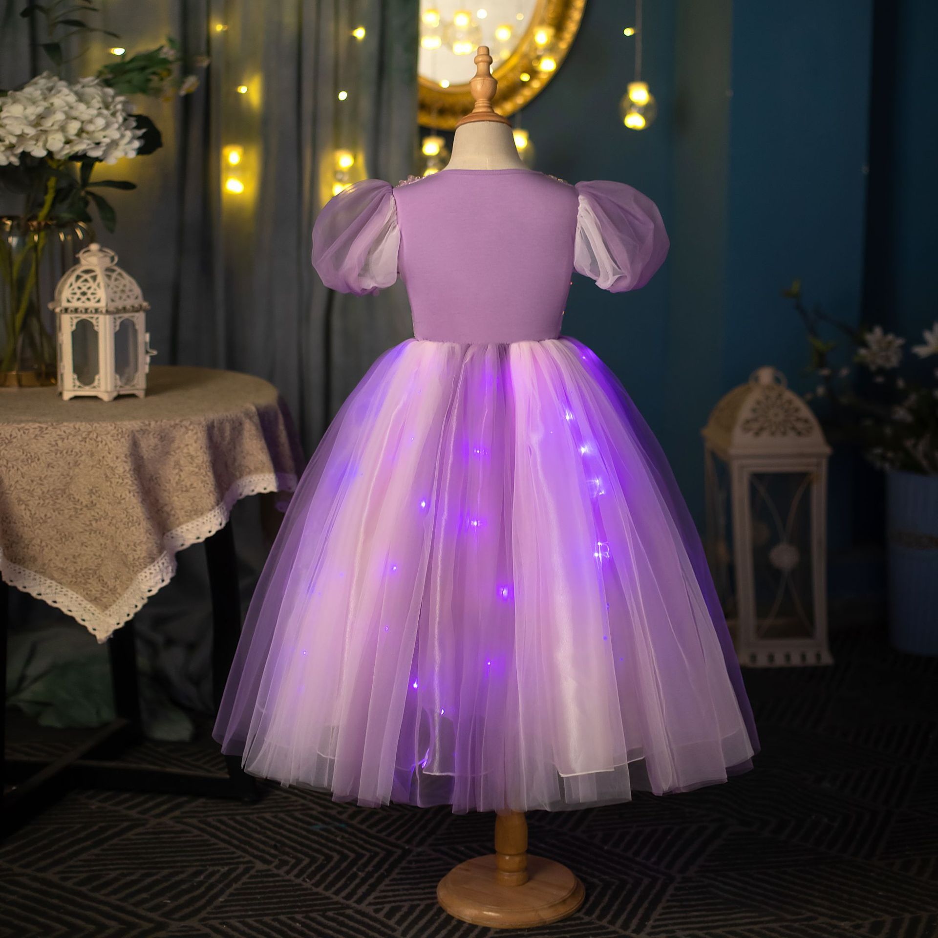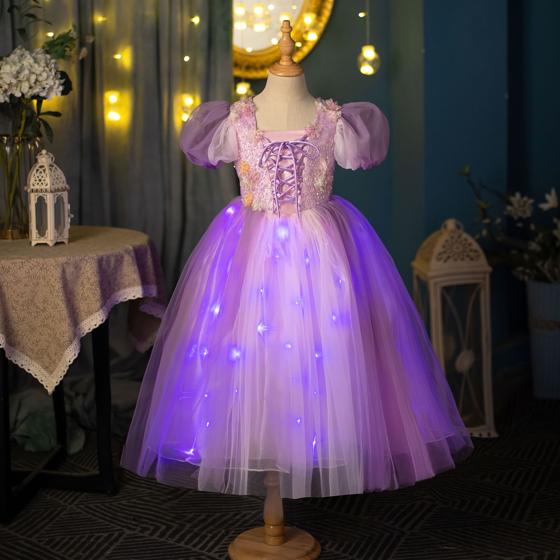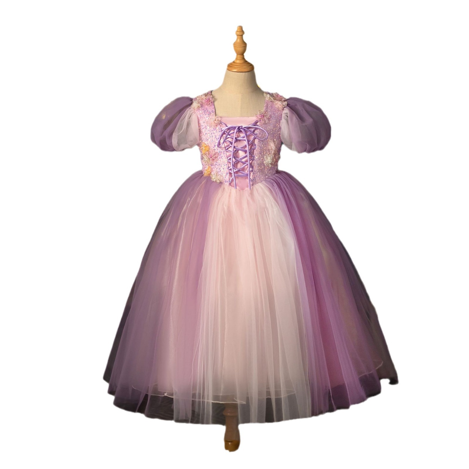 2025 Платье принцессы Рапунцель с длинными волосами, рождественское платье, стерео цветочное украшение, платье для девочек, экспортное