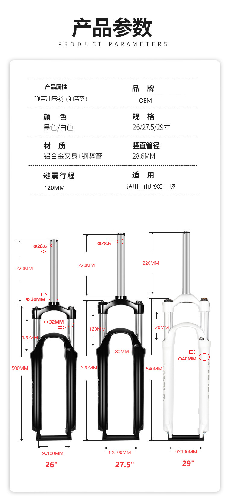 Передняя вилка велосипеда XCM 26 27,5 29inch масляная пружинная вилка для горного велосипеда, пружинная вилка, амортизатор, ход вилки 120 мм
