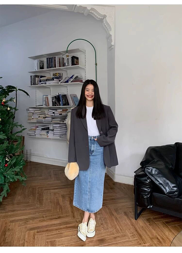 Шикарный серый блейзер для миниатюрных женщин, новая коллекция весна-осень 2026, элитный дизайн, нишевый повседневный костюм.