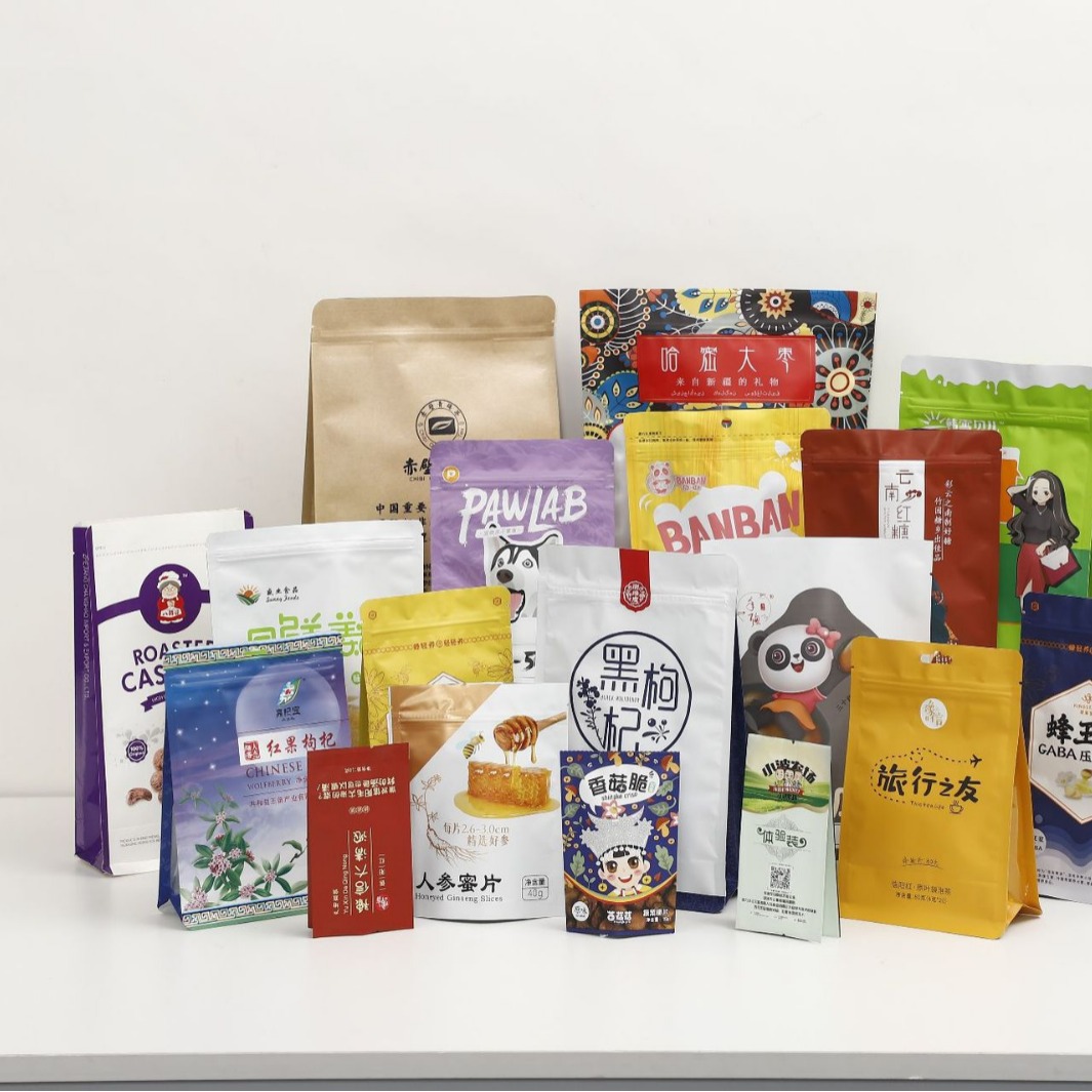 Пакеты для упаковки пищевых продуктов с цветной печатью, изготовленные на заказ самостоящие пакеты с застежкой-зиппером, восьмишовные пакеты из алюминиевой фольги, пакеты со специальным носиком.