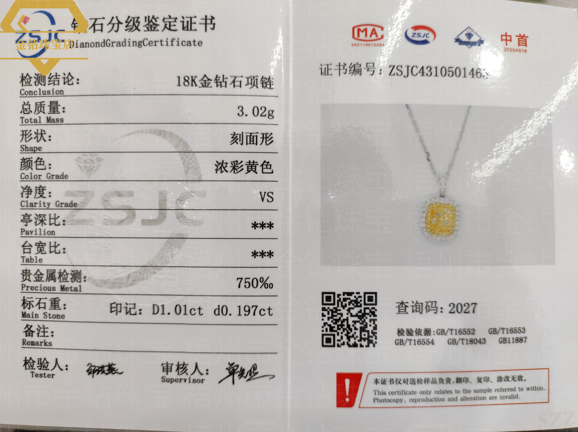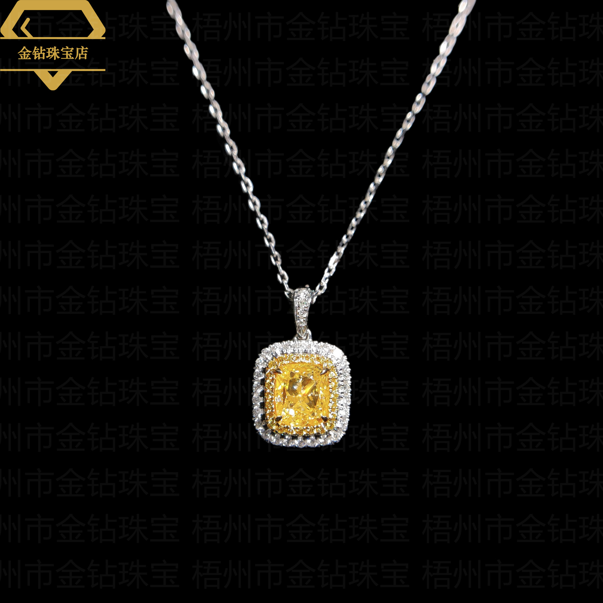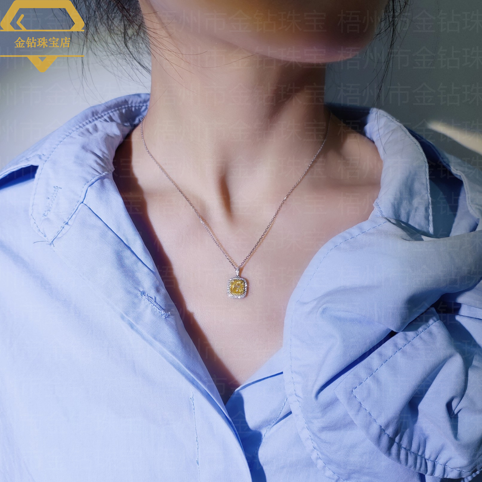 Колье с желтыми бриллиантами в форме подушки, 18-каратное золото, летняя новинка 2024 года, европейско-американский стиль, колье для трансграничной торговли