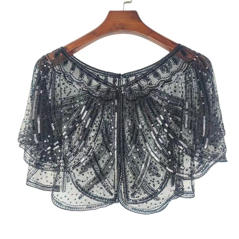 Женская шаль с блестками Короткое платье с бисером на плече