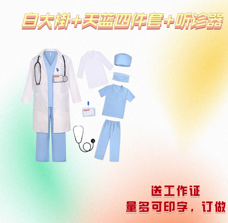 одиночное белое пальто; одиночный стетоскоп; Розовый комплект из четырех предметов; Зеленый комплект из четырех предметов.; Фиолетовый комплект из четырех предметов; Комплект из четырех предметов розово-красного цвета; Небесно-голубой комплект из четырех предметов; Белое пальто + розовый комплект из четырех предметов; Белый плащ + зеленый костюм-четверка; Белый плащ + фиолетовый костюм-четверка; Белое пальто + комплект из четырех предметов розово-красного цвета; Белое пальто + небесно-голубой комплект из четырех предметов; Белый халат + розовый костюм из четырех частей + стетоскоп.; Белый халат + зеленый костюм из четырех частей + стетоскоп.; Белый халат + фиолетовый костюм из четырех частей + стетоскоп.; Белый халат + розово-красный костюм-четверка + стетоскоп; Белый халат + небесно-голубой костюм из четырех частей + стетоскоп.