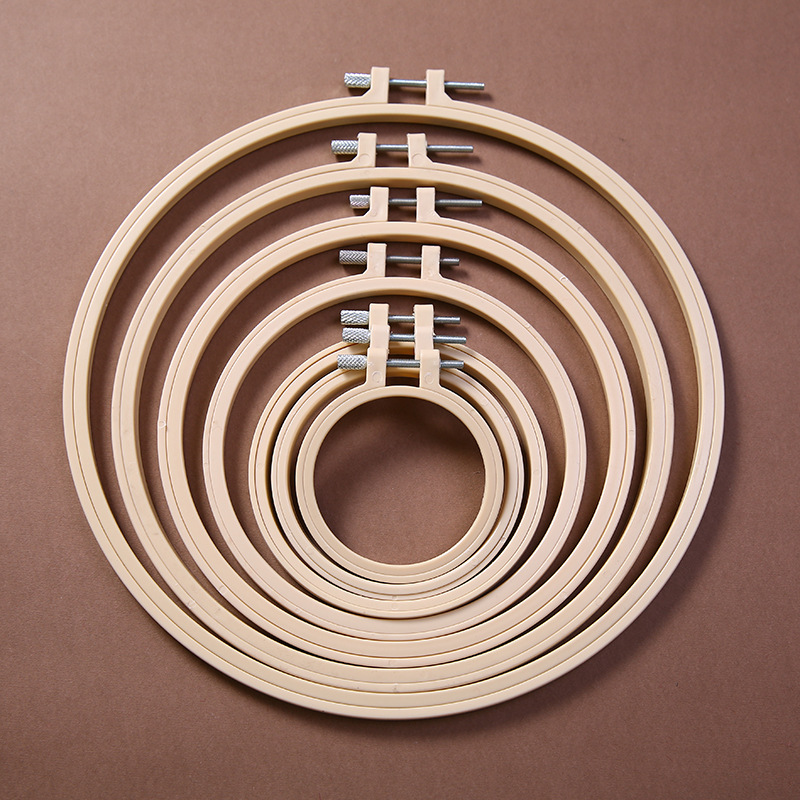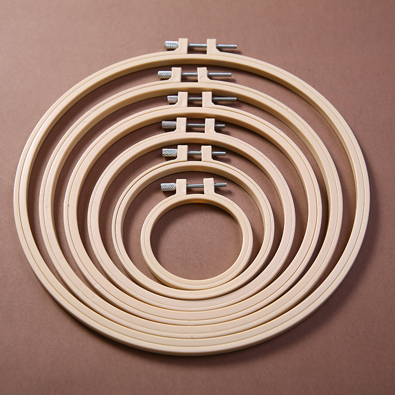 Популярная в международных продажах пластиковая вышивальная пяльца, имитация бамбуковой пяльцы, инструмент для вышивания крестиком своими руками, регулируемая бежевая рамка для вышивания
