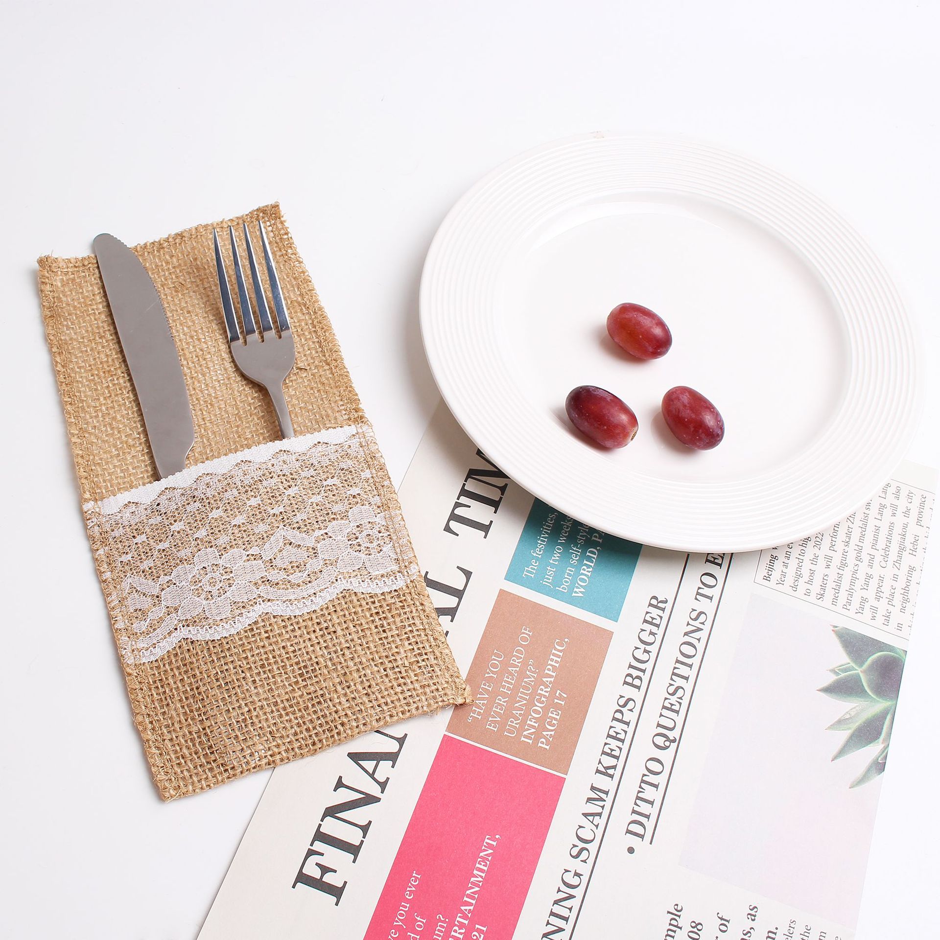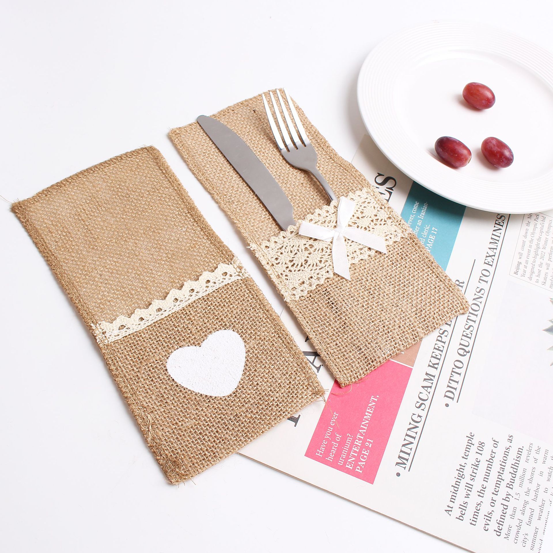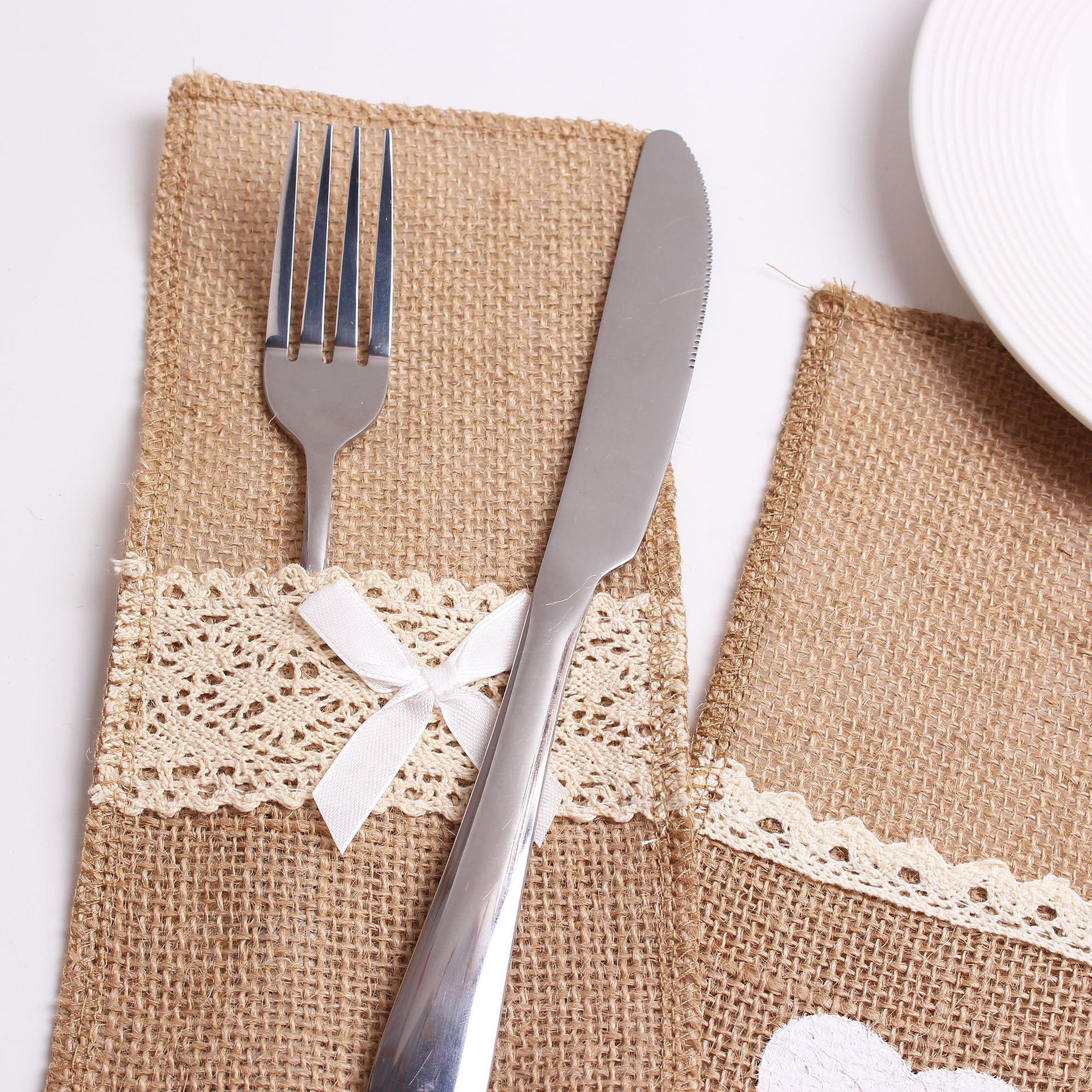 Прямые поставки с фабрики: кружевные мешочки для столовых приборов, украшения для свадеб, рождественских и праздничных мероприятий, натуральные джутовые мешочки для столовых приборов в наличии.