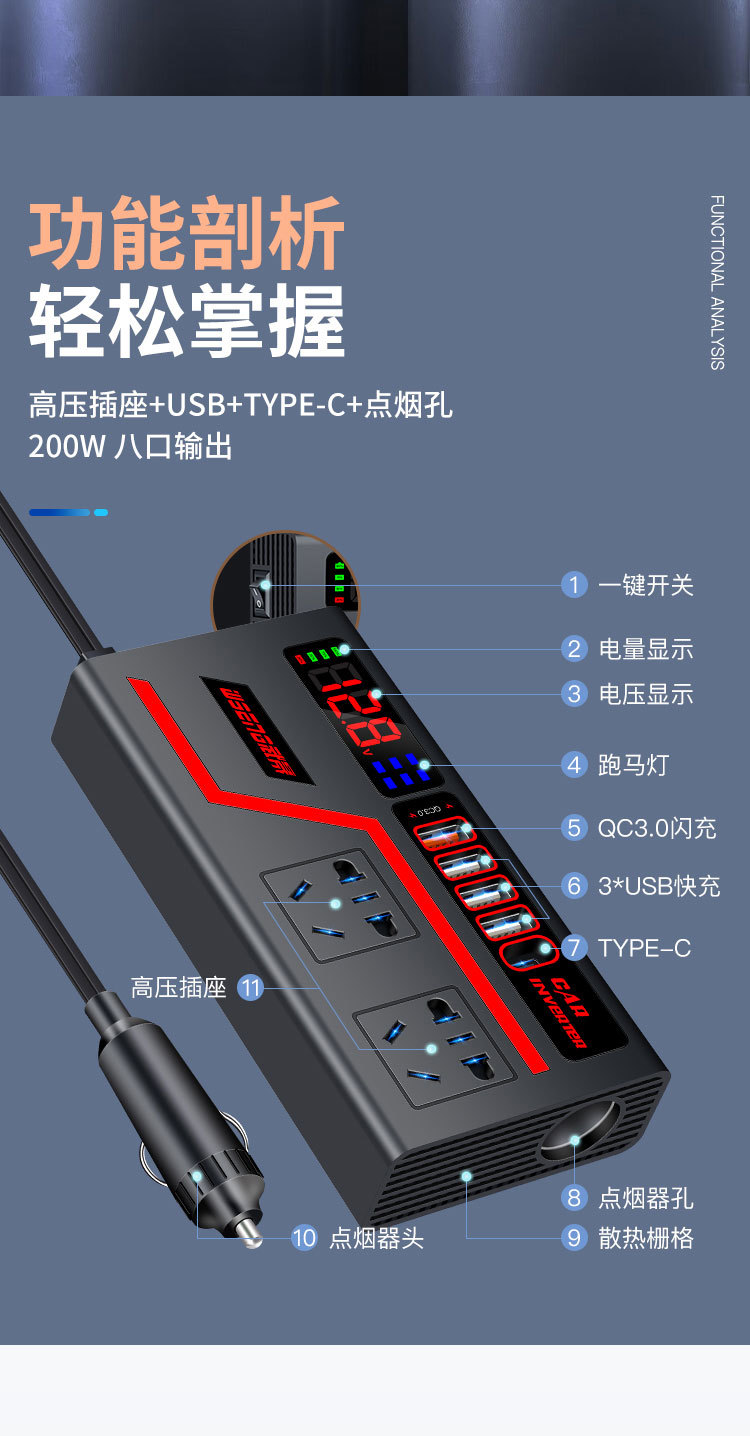 Автомобильный инвертор 12V24V универсальный к 220V грузовик розетка автомобильный интеллектуальный зарядный инвертор
