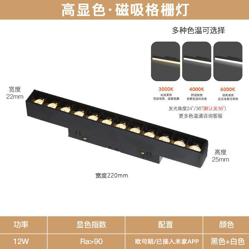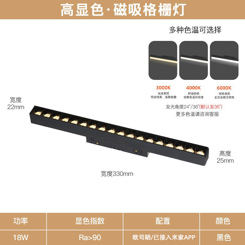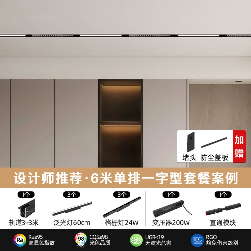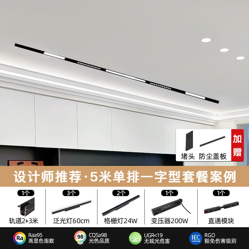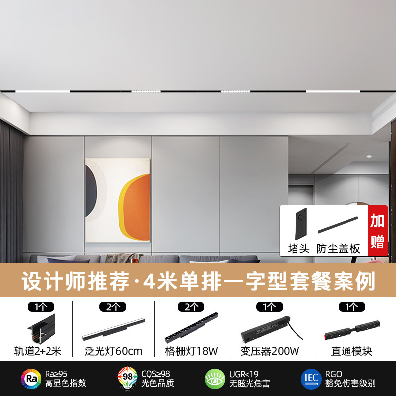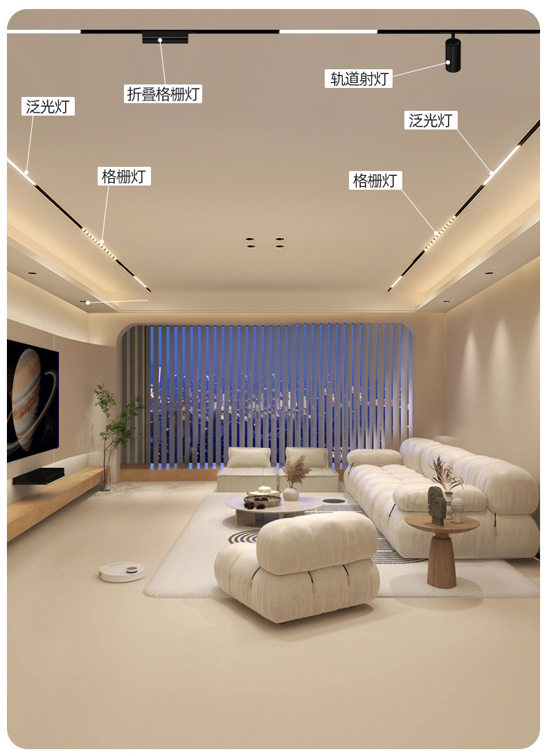 led嵌入式家用客厅无主灯智能格栅泛光灯明装暗装预埋磁吸轨道灯