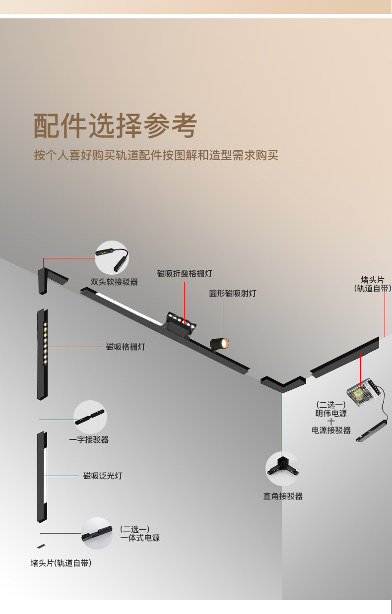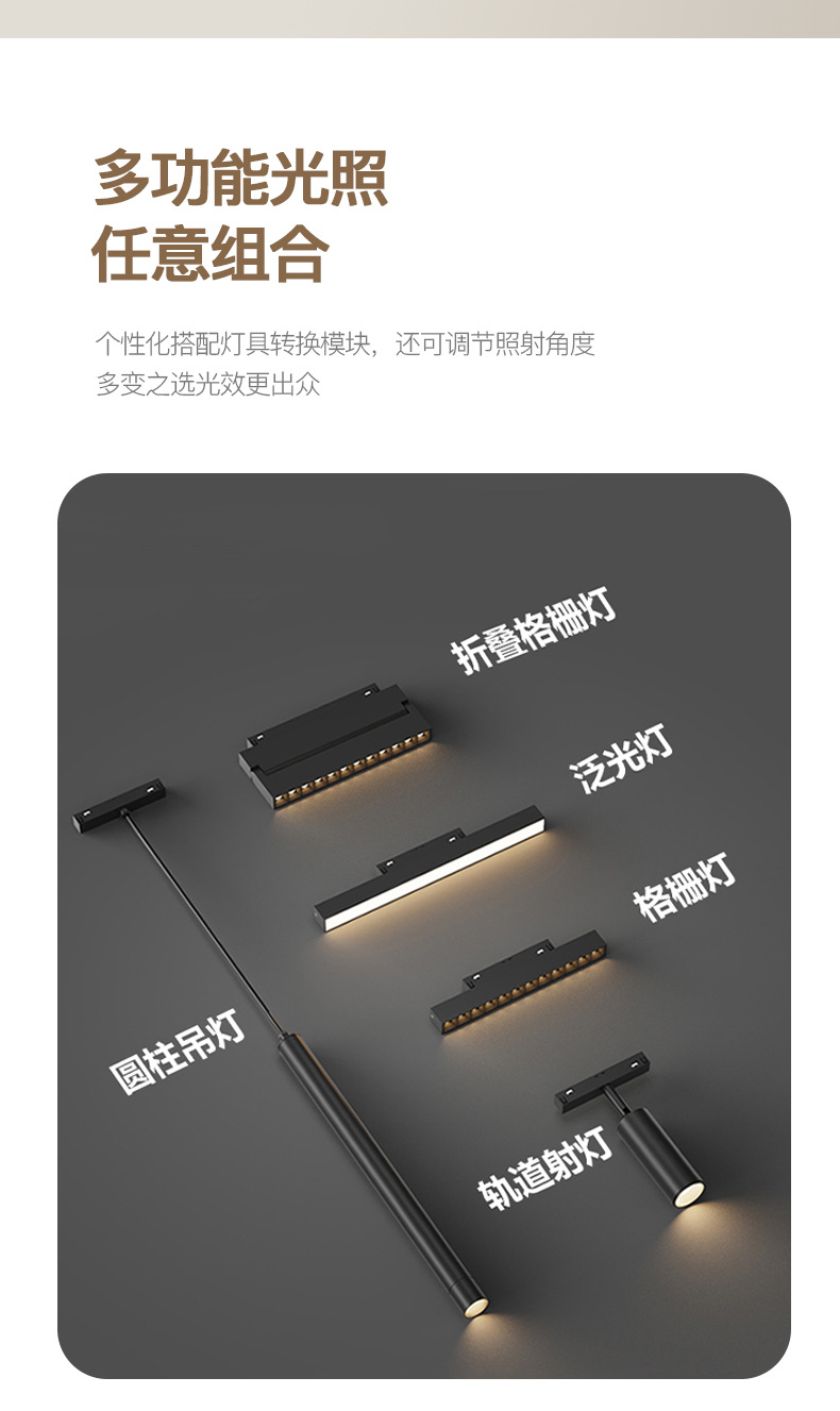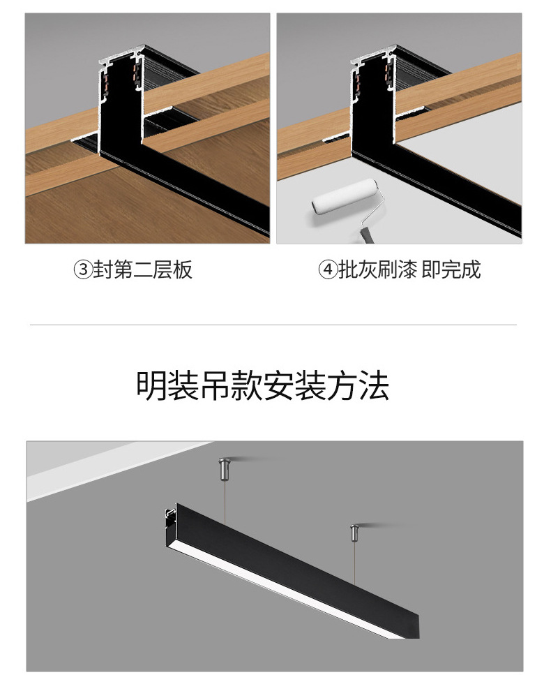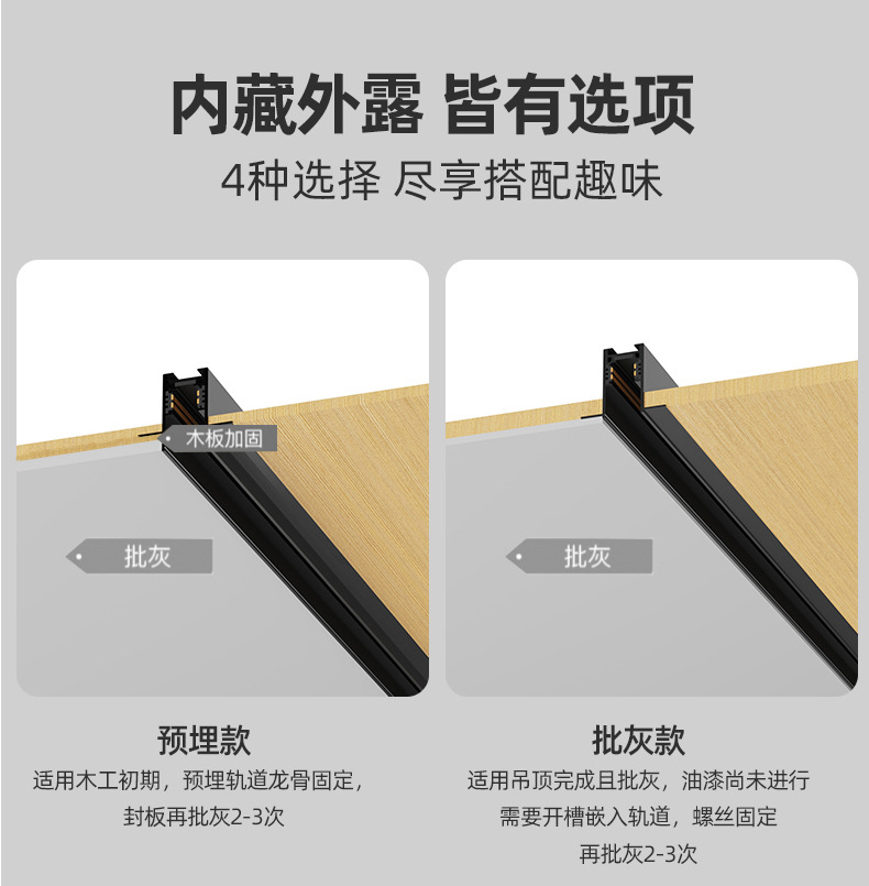 led嵌入式家用客厅无主灯智能格栅泛光灯明装暗装预埋磁吸轨道灯