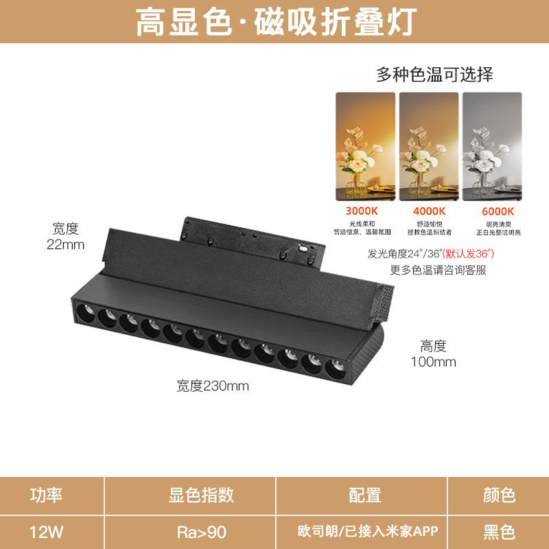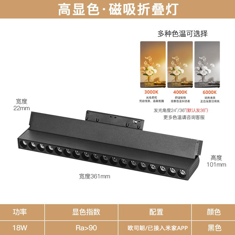 Пакет магнитных дорожек; черный; 3000К [теплый свет]; 4000К [нейтральный свет]; 6000К [белый свет]; Подключено к приложению Mijia; Встроенный источник питания с магнитной дорожкой; Авиационный алюминий + медь + материал толщиной 2,5; 3m [Предотвратить повреждение транспортных путей]