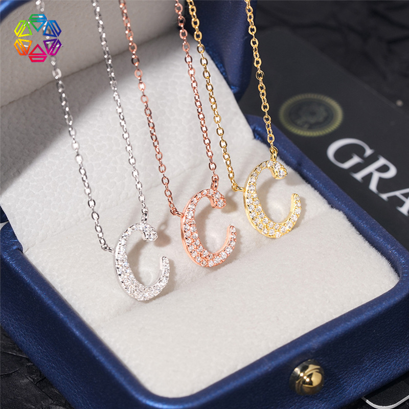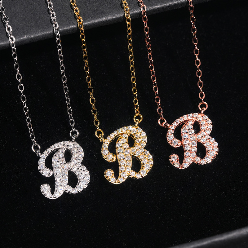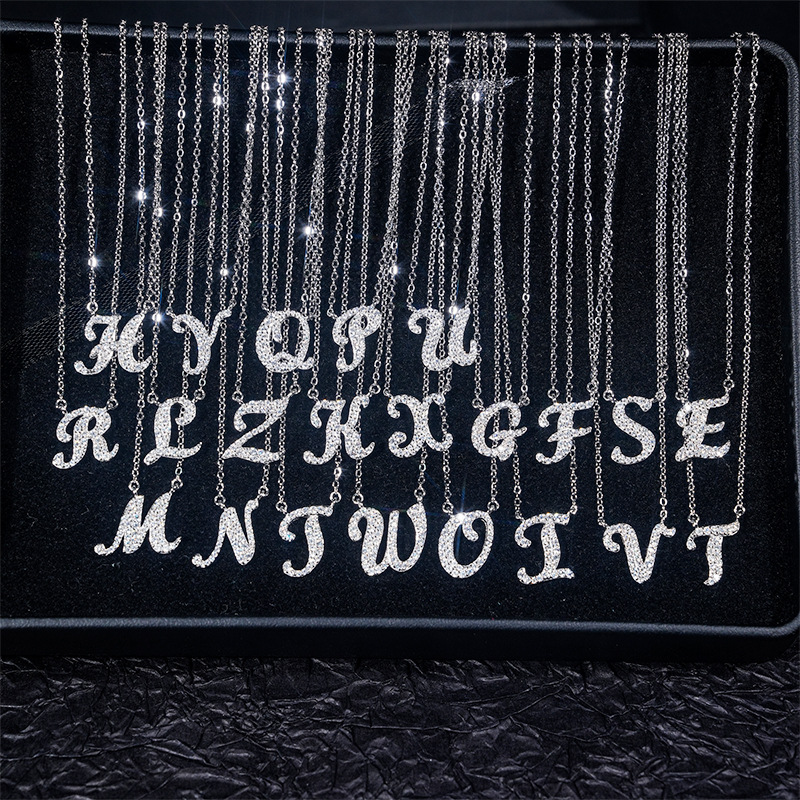 Оптовая продажа от производителя: новое популярное персонализированное колье с подвеской-буквой, полностью инкрустированное муассанитом, из серебра S925, модная цепочка на ключицу для женщин