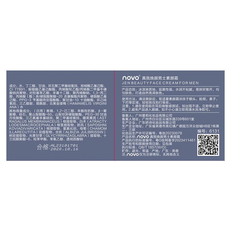 NOVO6131 Действительно Я Обложение Мужской Обезжий Крем