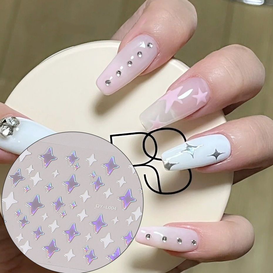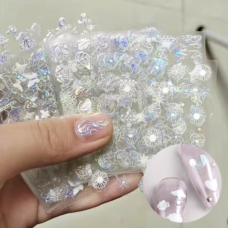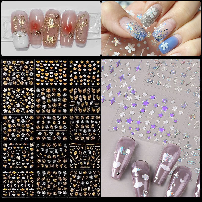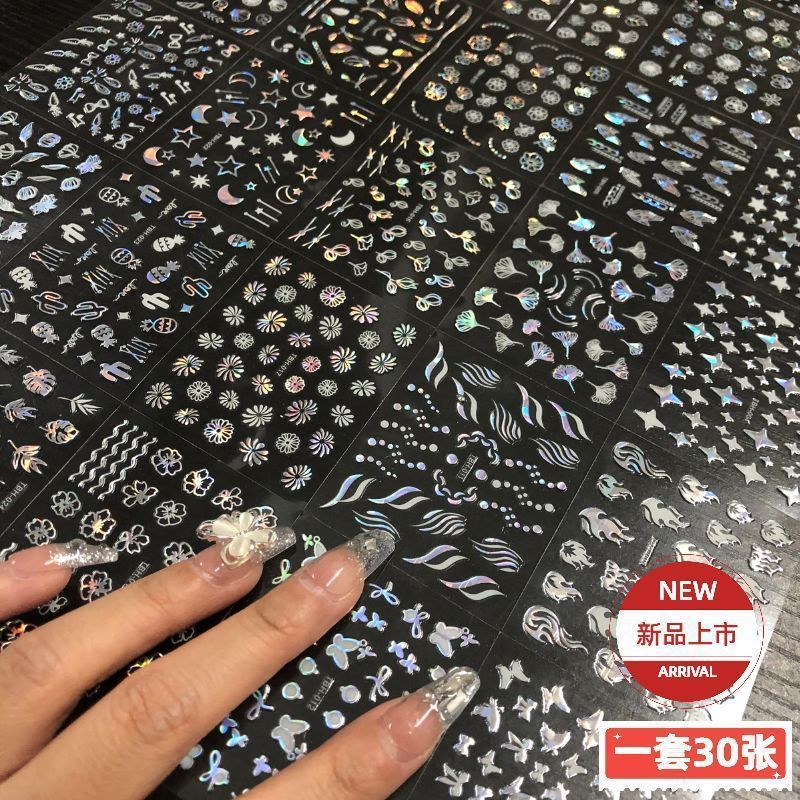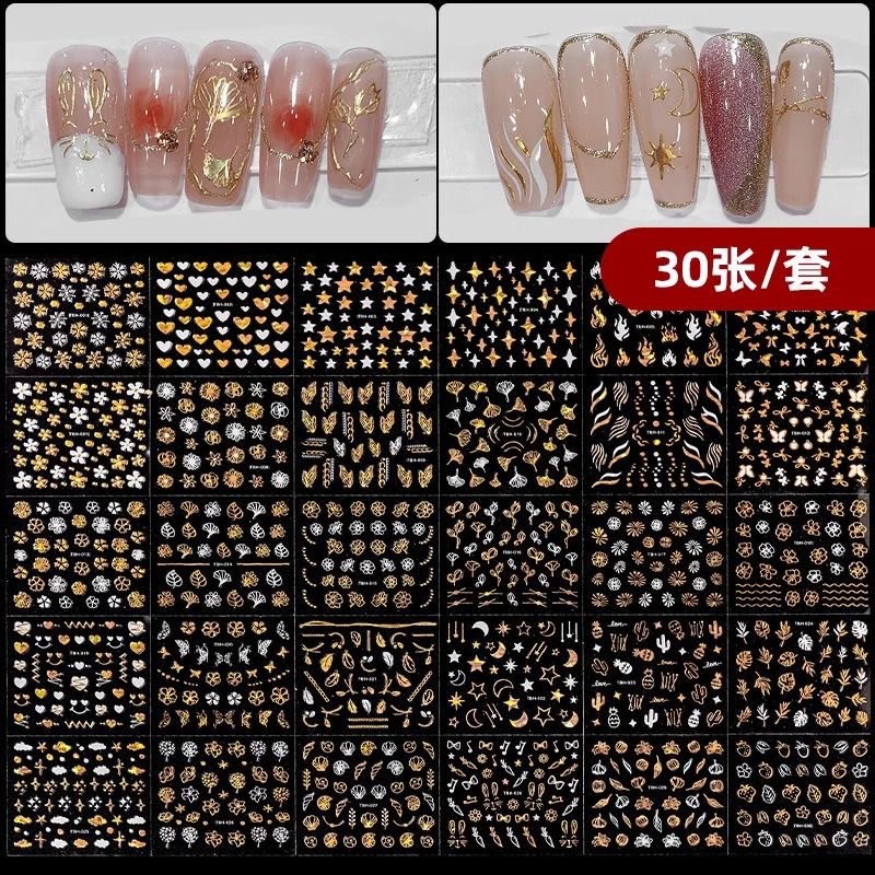 Трансграничный маникюр, золотые наклейки, лазерные, синие, серебряные, бронзовые, наклейки для ногтей, звезда и луна, цветы любви, популярный маникюр