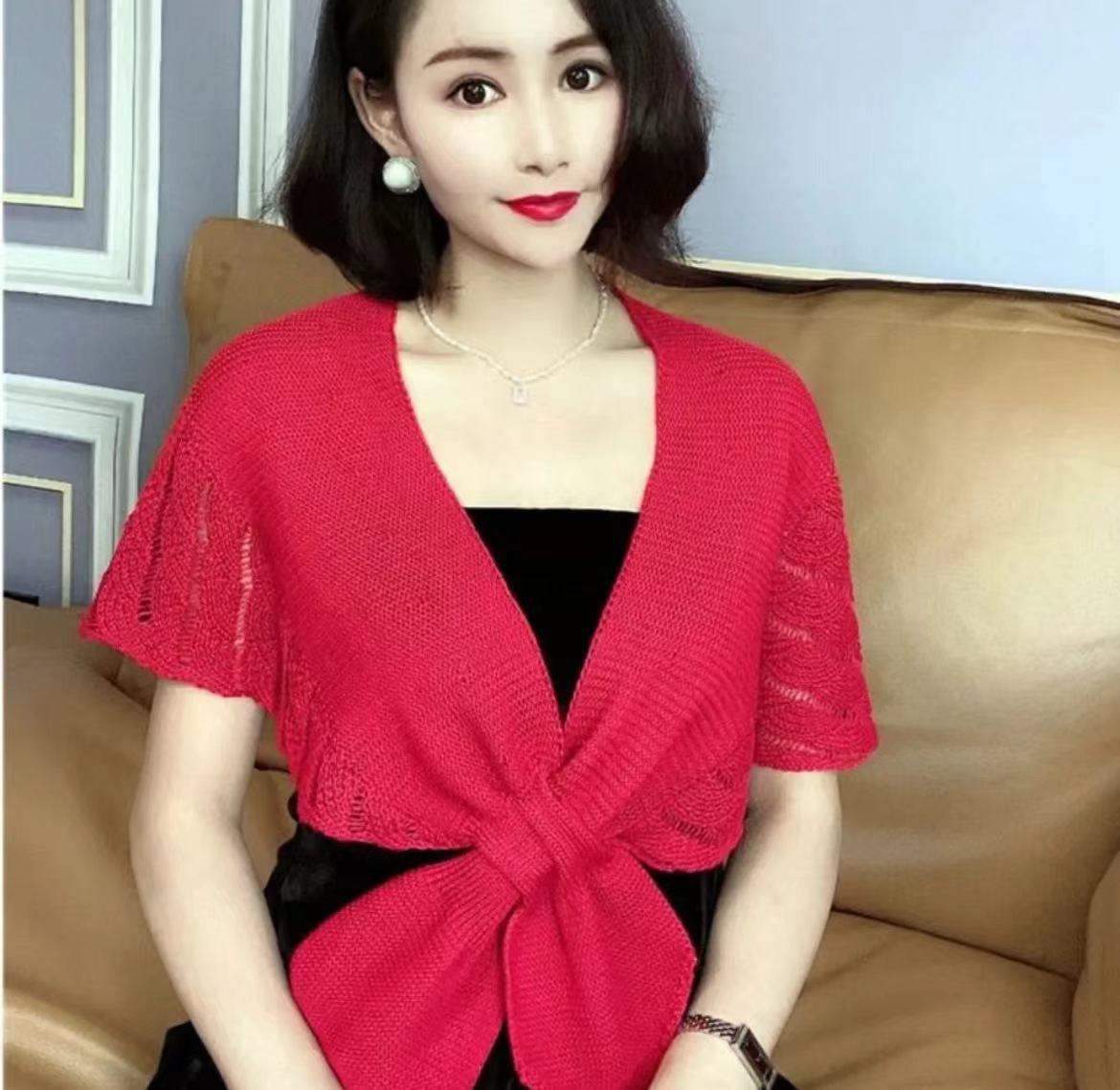 Комната с кондиционером маленькая шаль женская плечевая шея новый чонсам снаружи вязаный модный высококлассный летний тонкий стиль с юбкой