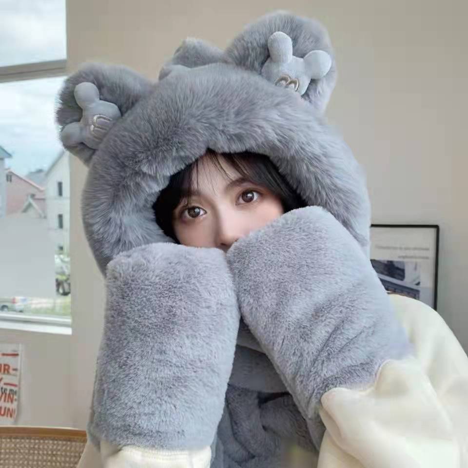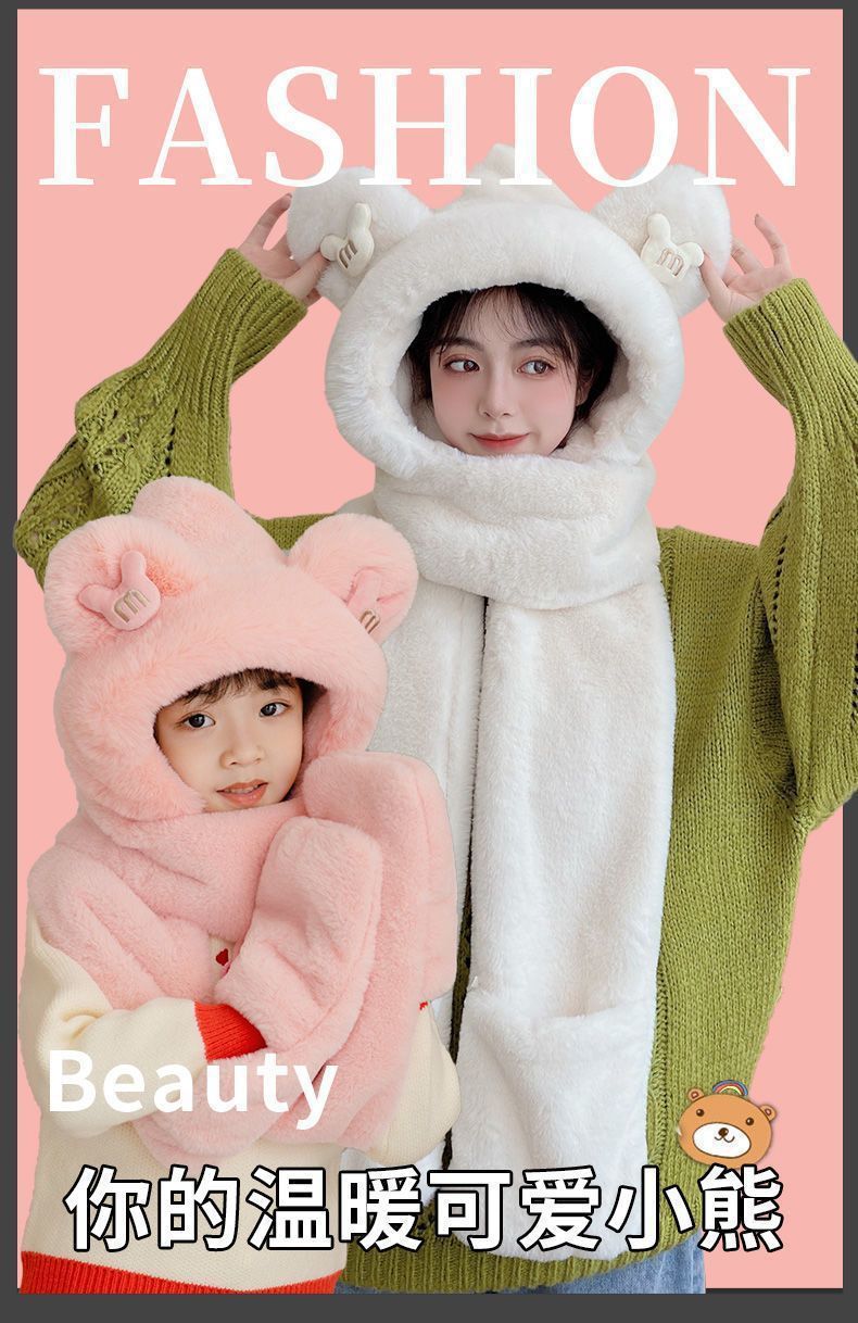 Комплект из трех предметов: шапка-медведь, шарф с капюшоном и перчатки (для взрослых и детей), корейская версия, милый дизайн Микки, теплый пуловер.