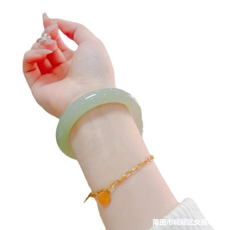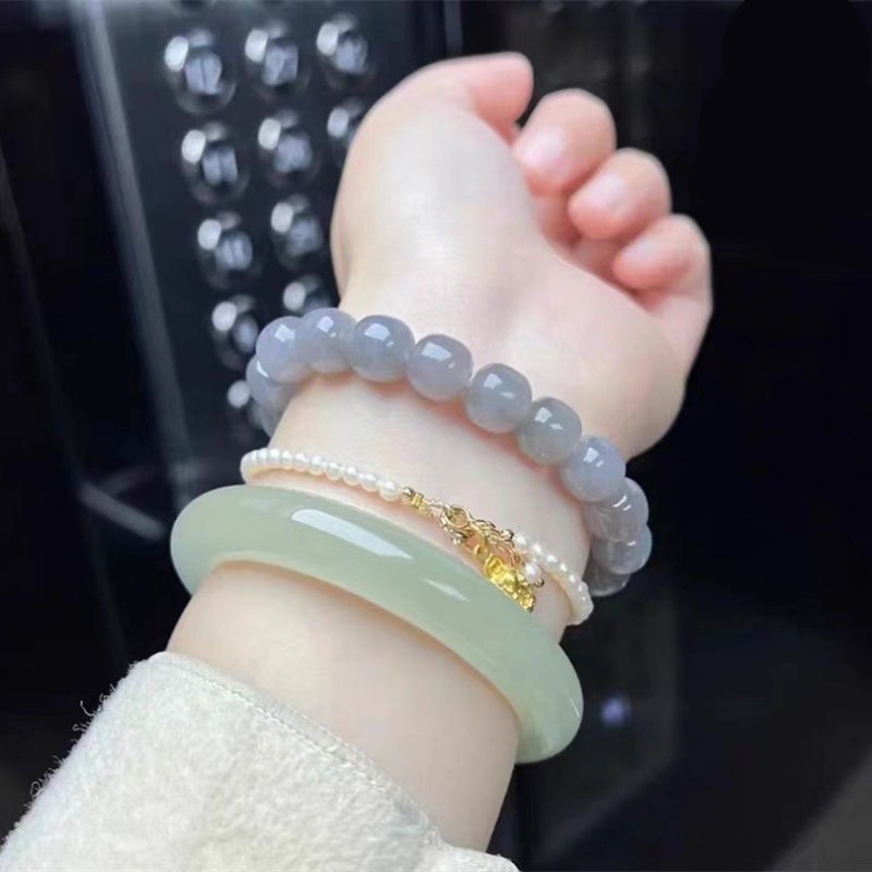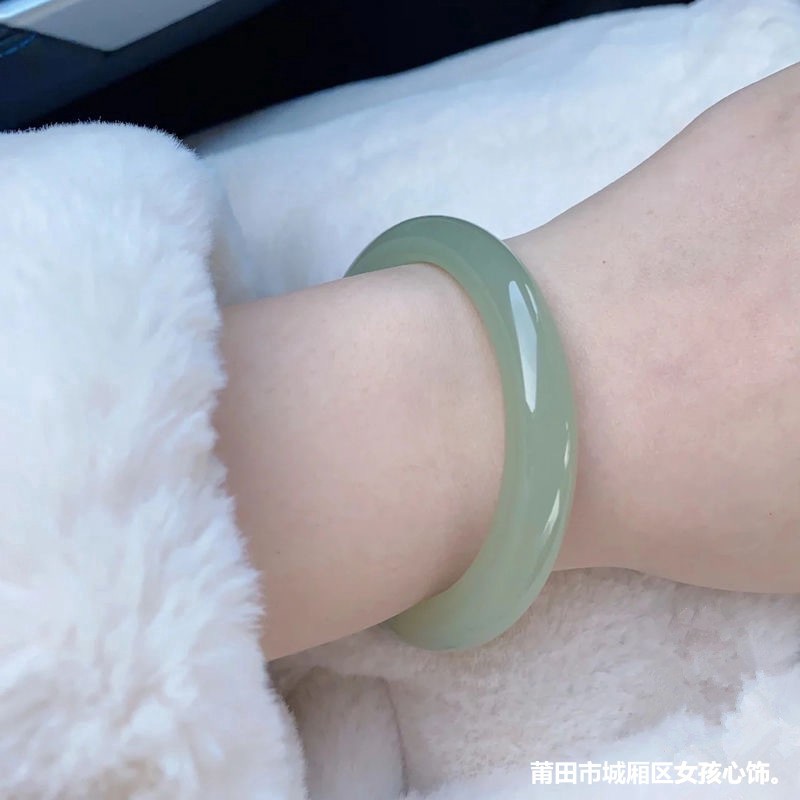 Ледяной браслет Hutian Jade Круглая полоска светло-зеленый натуральный Синьцзянский синий белый нефритовый браслет для девочек
