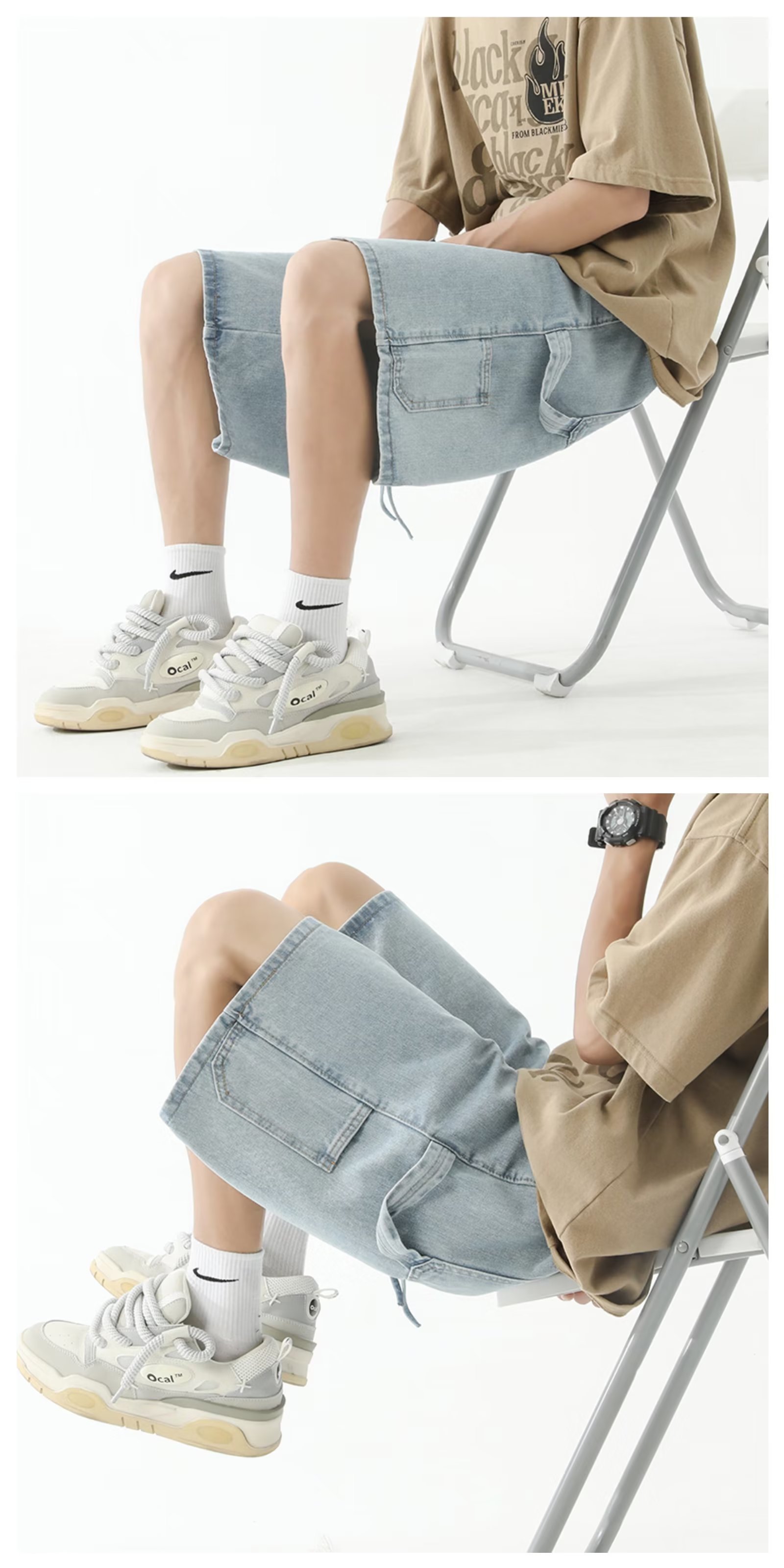 Джинсовые шорты мужской летний новый стиль Gaojie Chao 2024 новый повседневный тренд укороченные брюки свободные джинсы