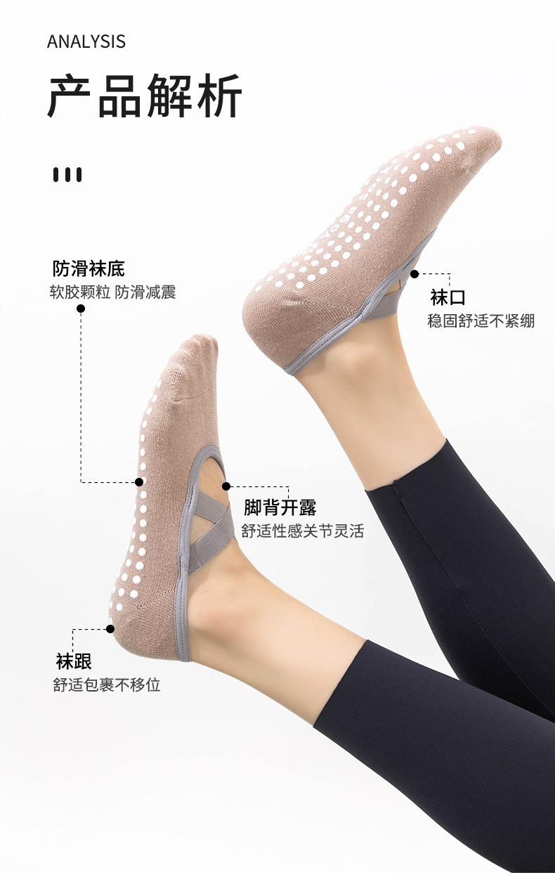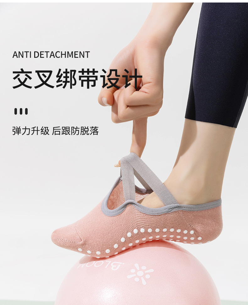 Индивидуальные носки для йоги, домашние спортивные носки для пола, перекрестные ремни, нескользящие каблуки, противоскользящие с клеевым покрытием, могут обрабатываться с помощью специальной технологии.