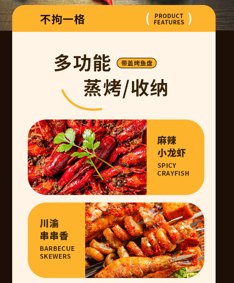 Нержавеющая сталь жареная рыбная тарелка с двумя ушами раков