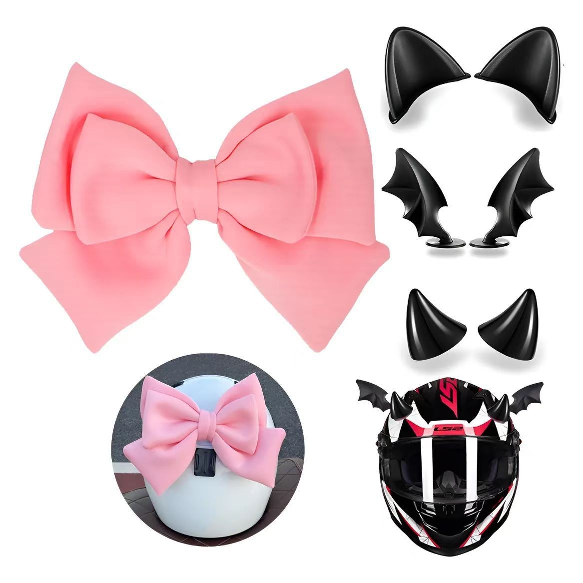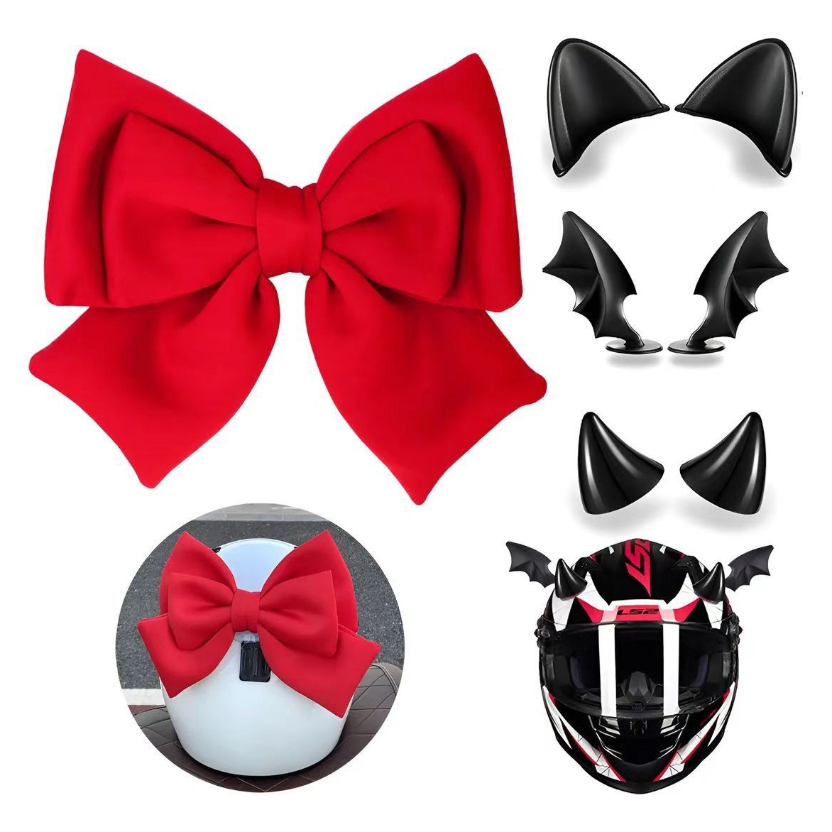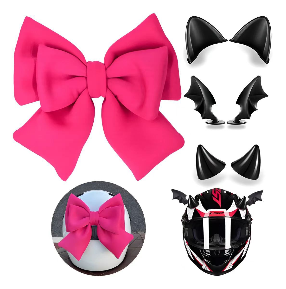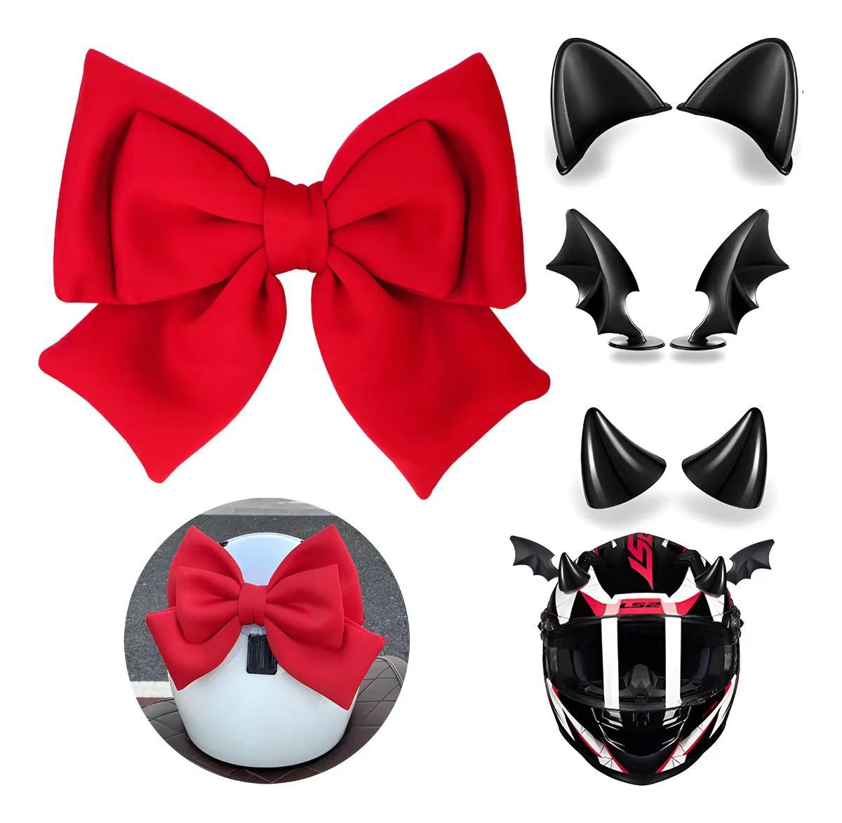 Комплект из четырех предметов розово-красного цвета; Розовый комплект из четырех предметов; Красный комплект из четырёх предметов.; черные крылья дьявола; красные крылья дьявола; черный рог; Ред Булл Хорн; Черные уши Микки; Черные кошачьи уши; Розовый бант; красный бант; розовый бант
