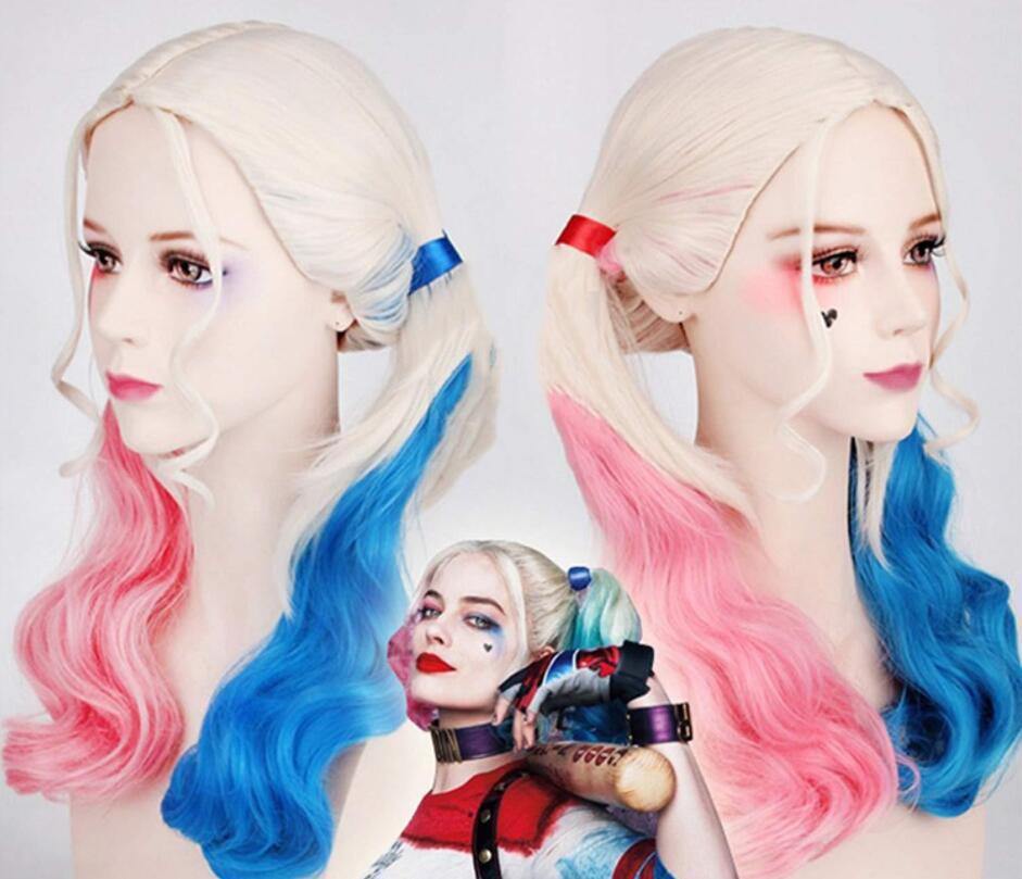 Вышитый комплект из 4 предметов.; набор из 3 предметов; Комплект из 5 предметов: куртка + шорты + перчатки + футболка + парик; Набор реквизита из четырех предметов; Комплект из 6 предметов: куртка + шорты + перчатки + футболка + парик + надувная палка; Комплект из 5 предметов: куртка + шорты + перчатки + футболка + надувная палка; Харли Квинн; чулки в сеточку; Надувная палка; пучок волос