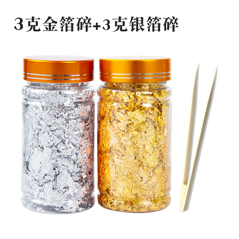 3 г золотой фольги [бесплатный бамбуковый зажим]; Серебряная фольга 3 г [бесплатный бамбуковый зажим]; 3 г каждая из золотой фольги + серебряная фольга [бесплатный бамбуковый зажим]]; Трехцветные сверкающие золотые фольги, всего 3 г [бесплатный бамбуковый зажим]; Мини-набор инструментов из золота