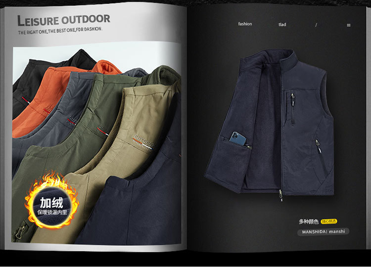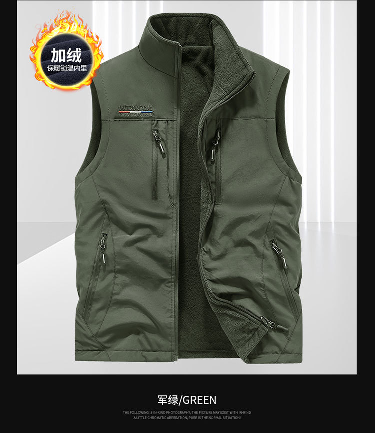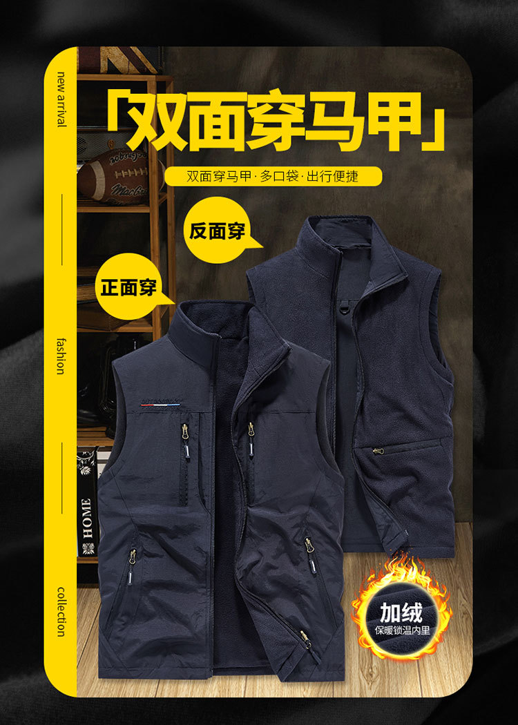 Открытый осенний и зимний двухсторонний бархат мужской жилет многофункциональный многокарманный воротник