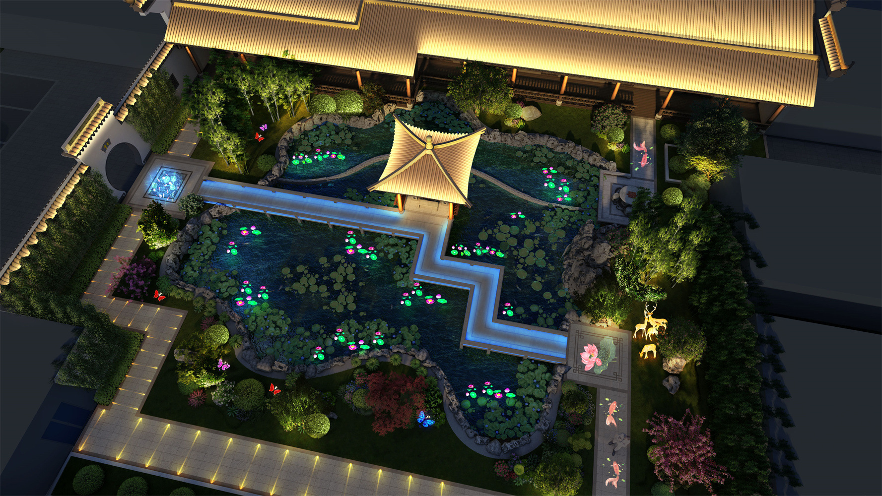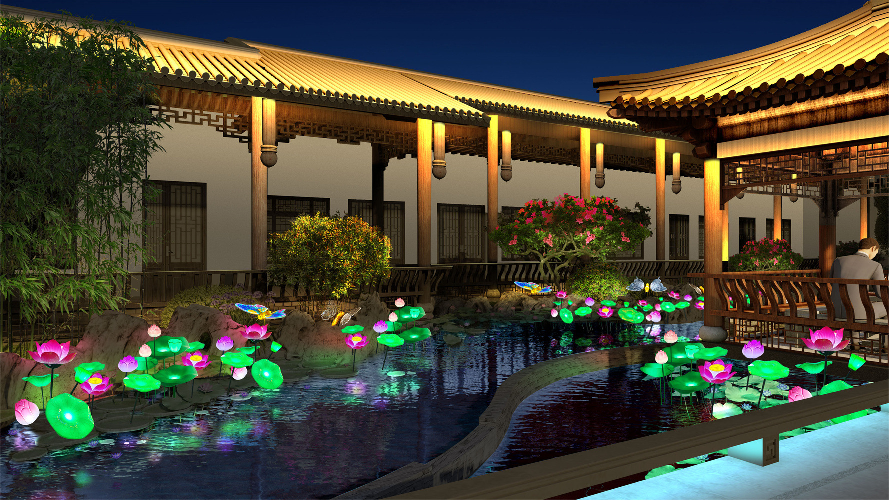 Дизайн освещения визуализации Fenghe Bjeyuan ночная сцена дизайн дизайн схема наружного освещения проекта визуализации