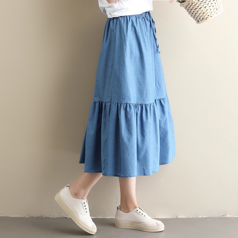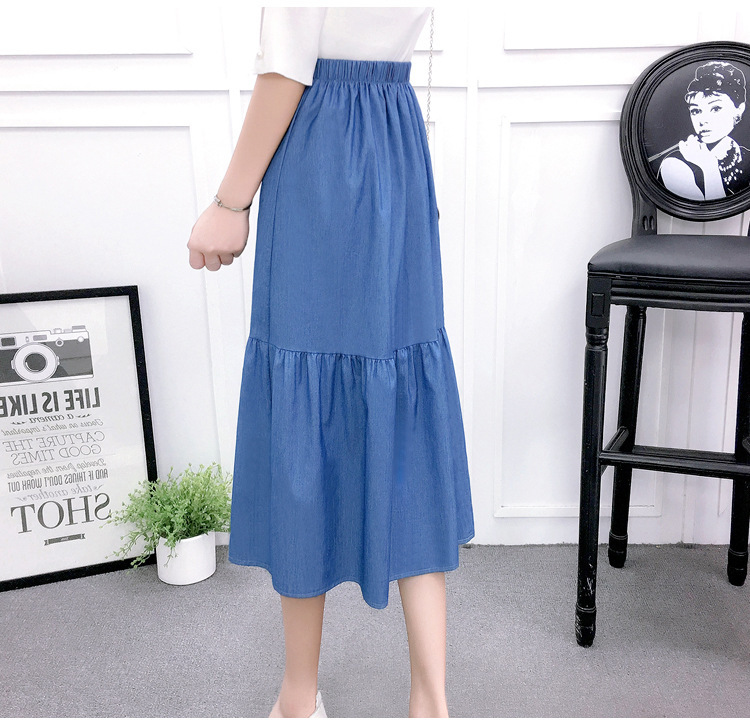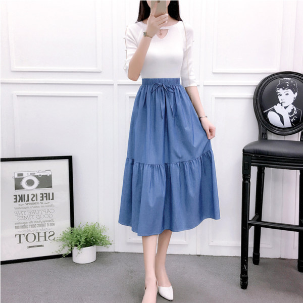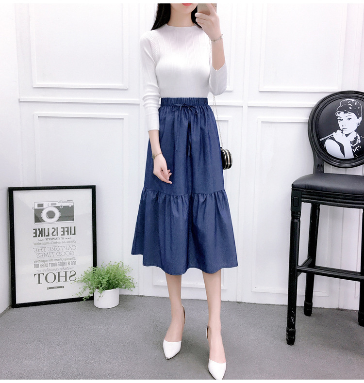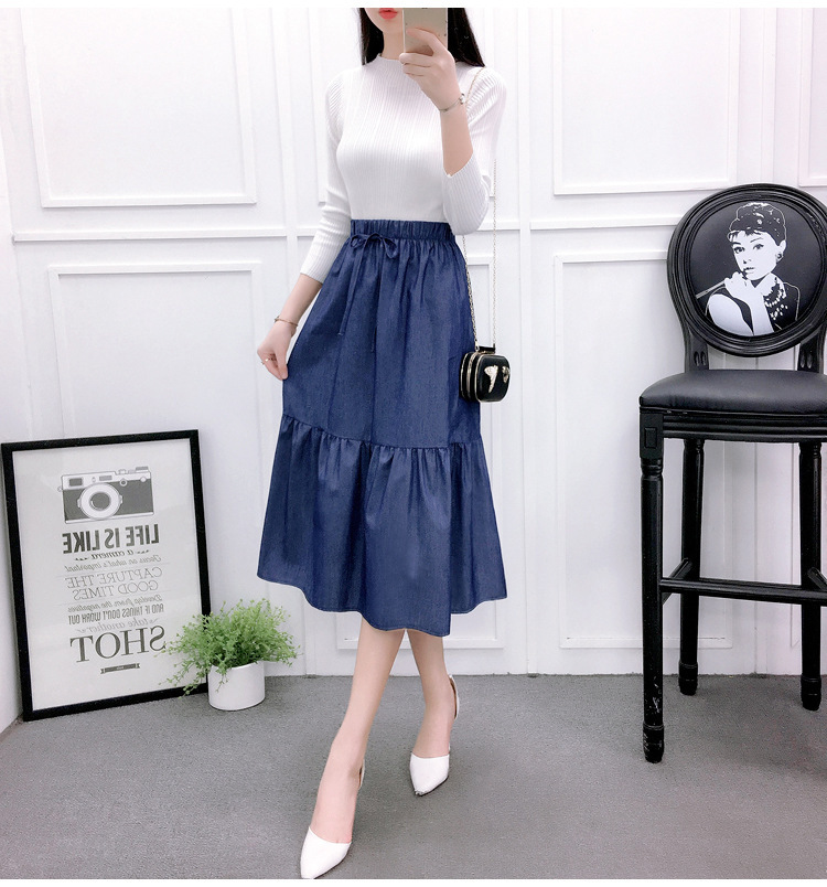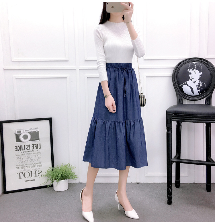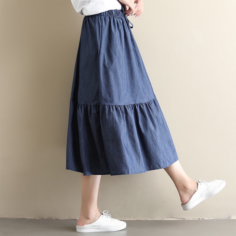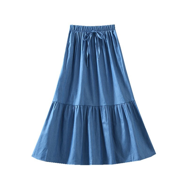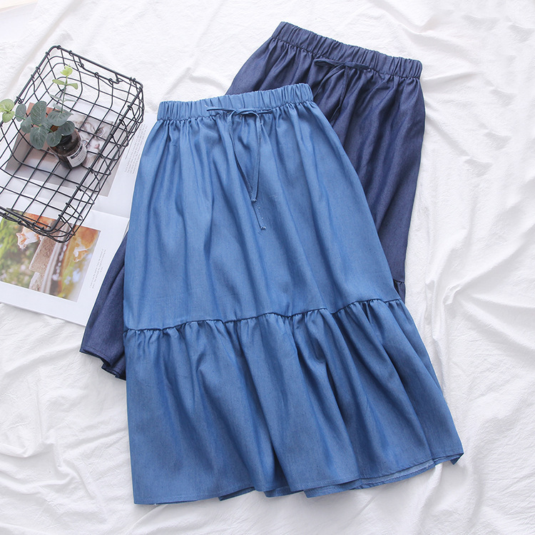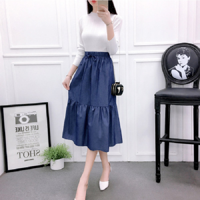2022 AliExpress eBay Amazon джинсовая юбка большого размера средней длины ретро тонкий сшитый плиссированный зонт оптом
