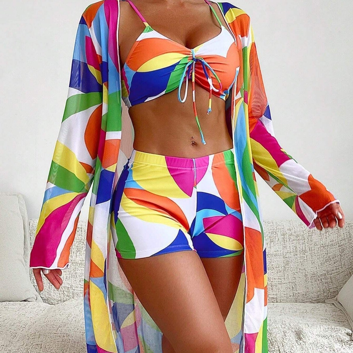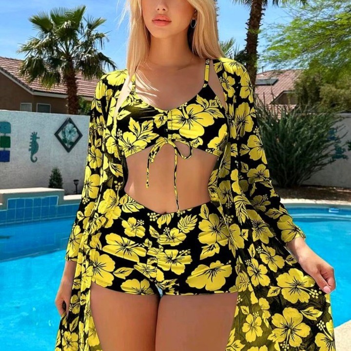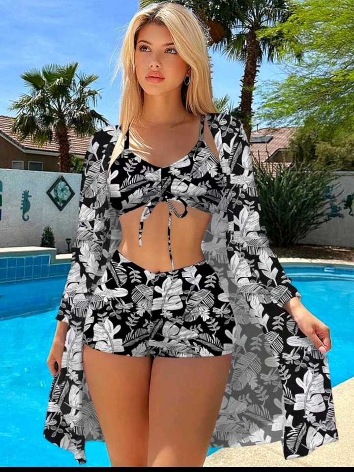 2024 новый спот трансграничный новый купальник Европа и США внешняя торговля сплит с высокой талией блузка бикини купальник женский три штуки