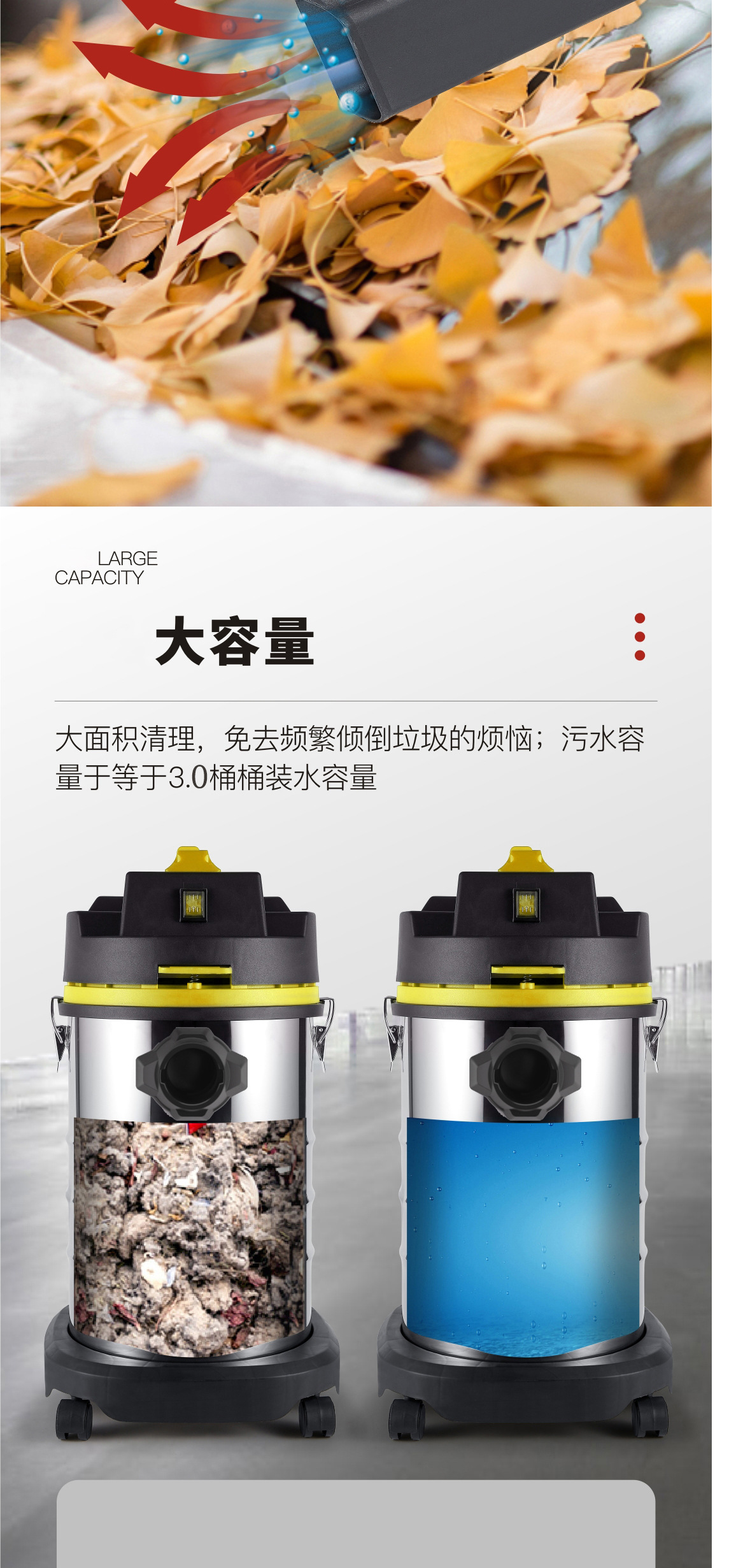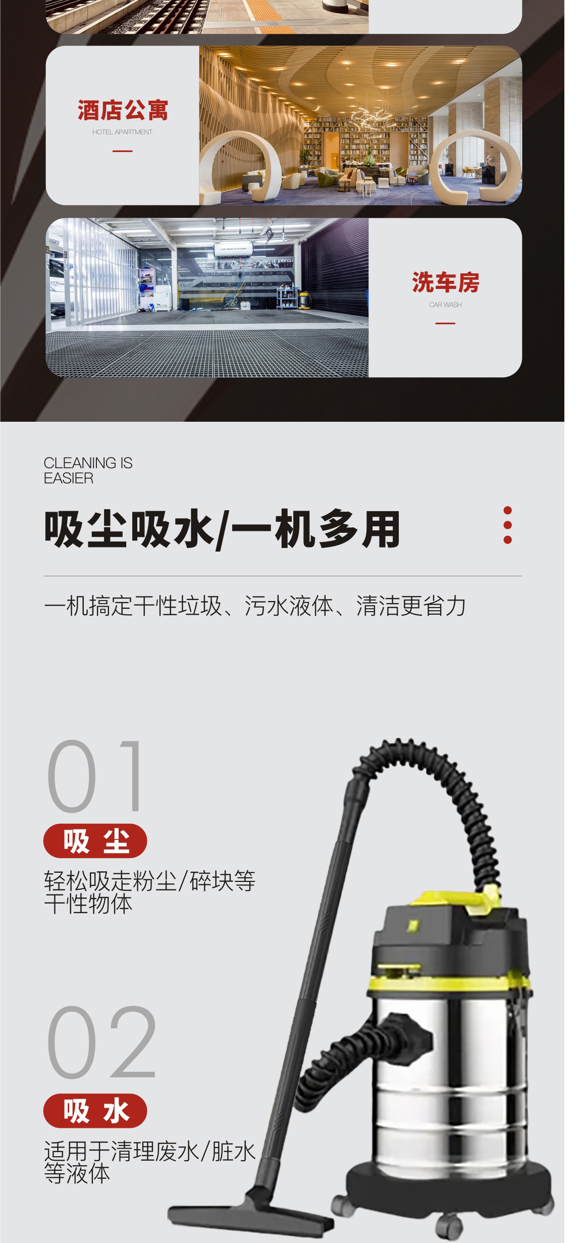 Коммерческий пылесос с высокой мощностью всасывания, трехцелевой небольшой пылесос для влажной и сухой продувки, автомойка, коммерческий промышленный швовой пылесос