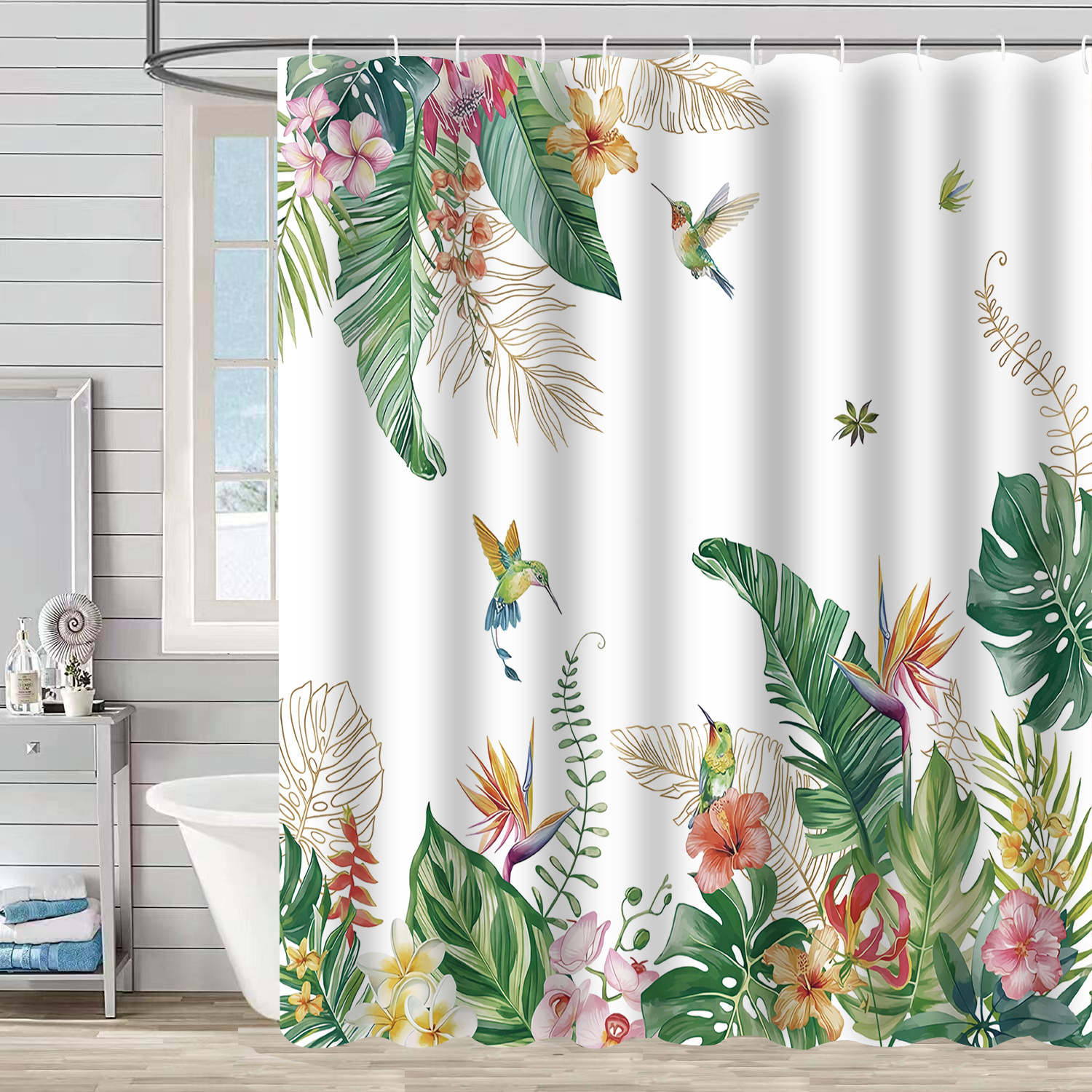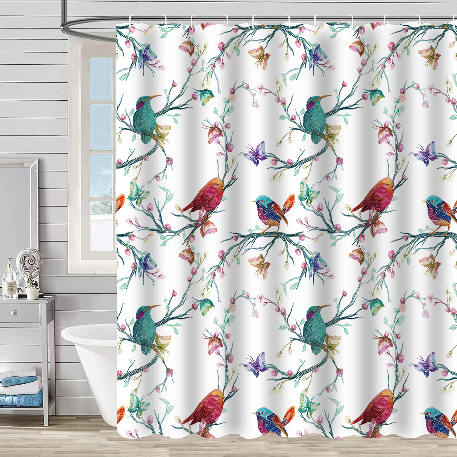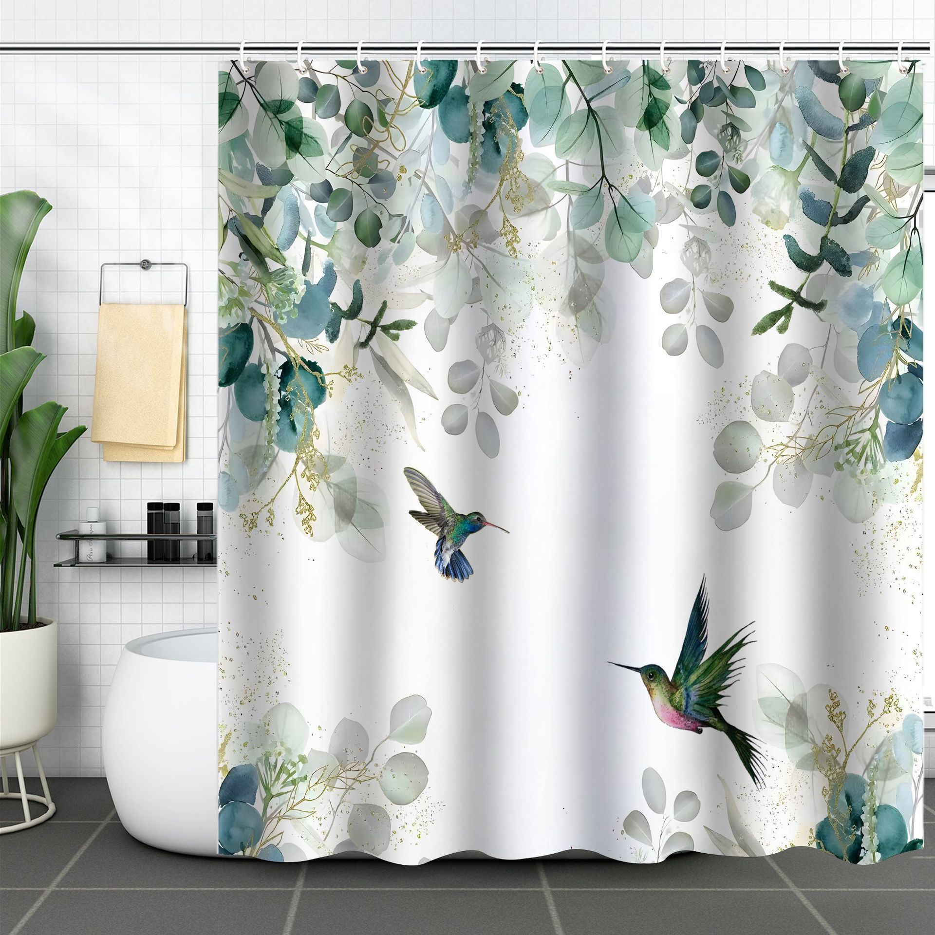 Водонепроницаемая тканевая занавеска для душа с новым дизайном: ветви деревьев, цветы, колибри, растения – перегородка для ванной комнаты