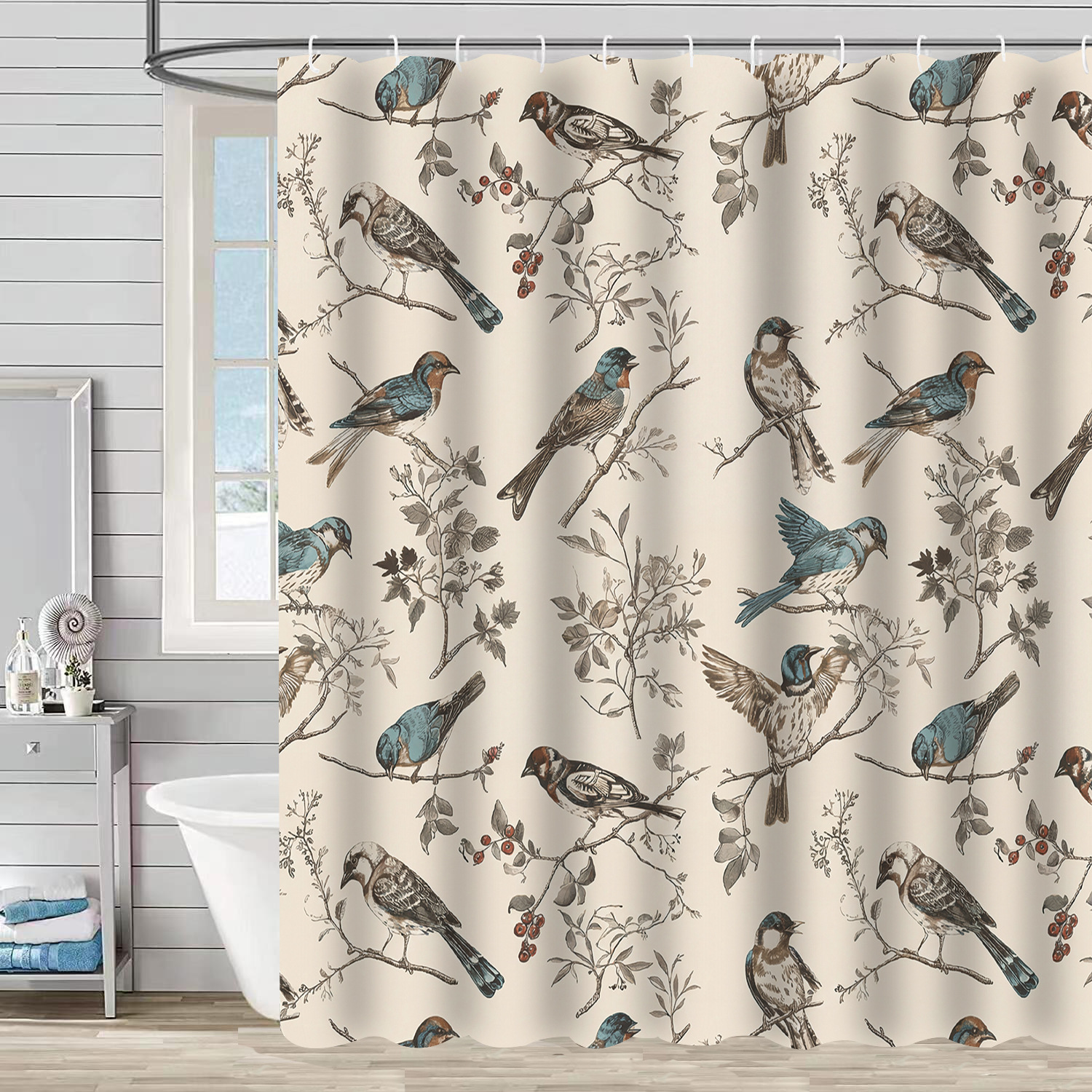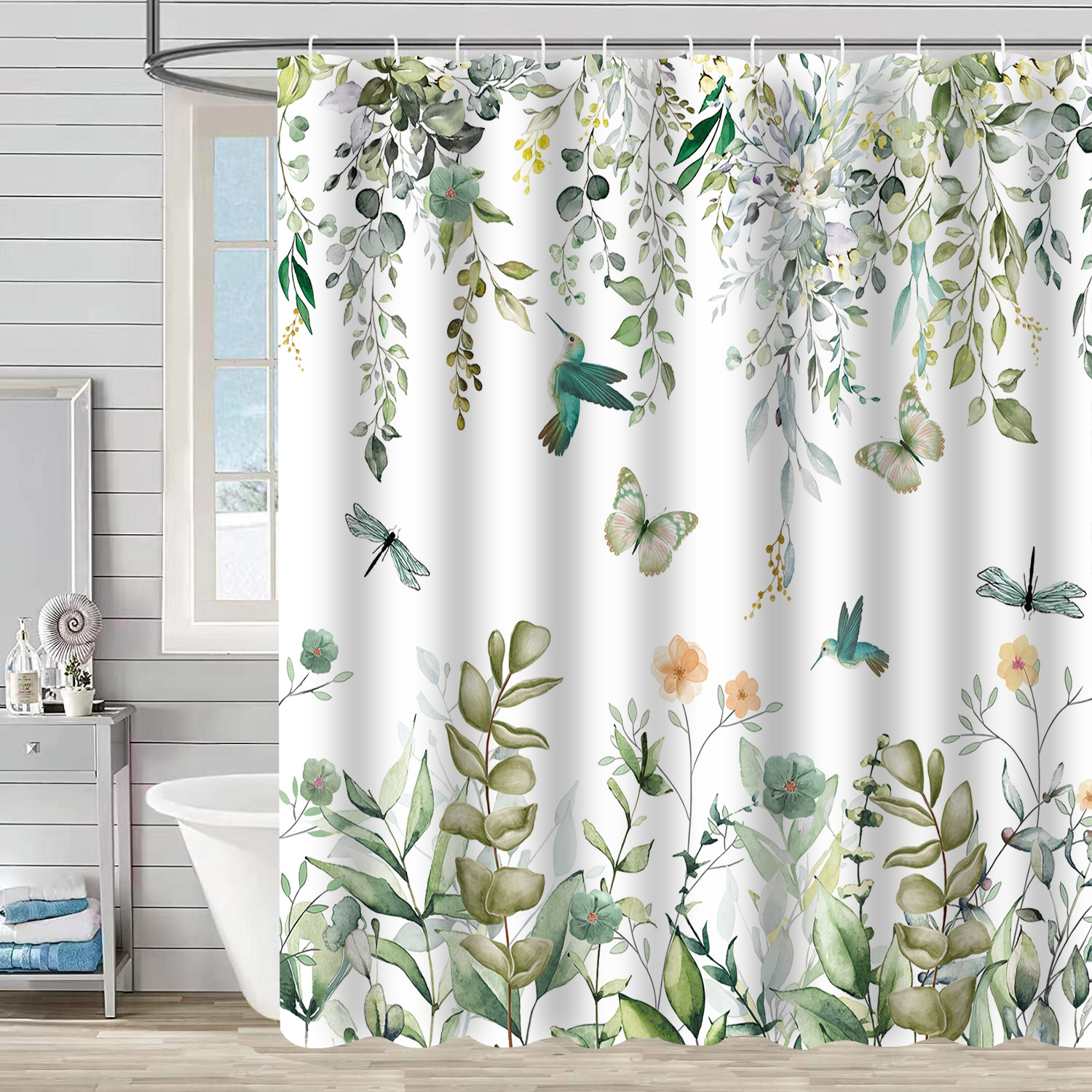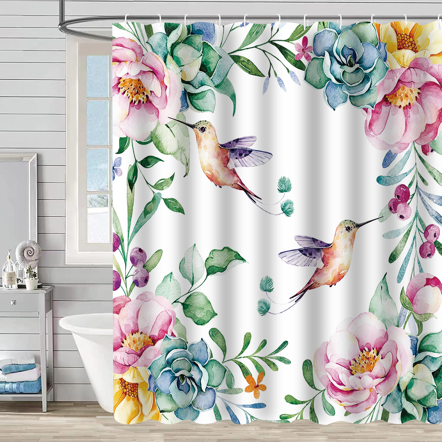 Водонепроницаемая тканевая занавеска для душа с новым дизайном: ветви деревьев, цветы, колибри, растения – перегородка для ванной комнаты