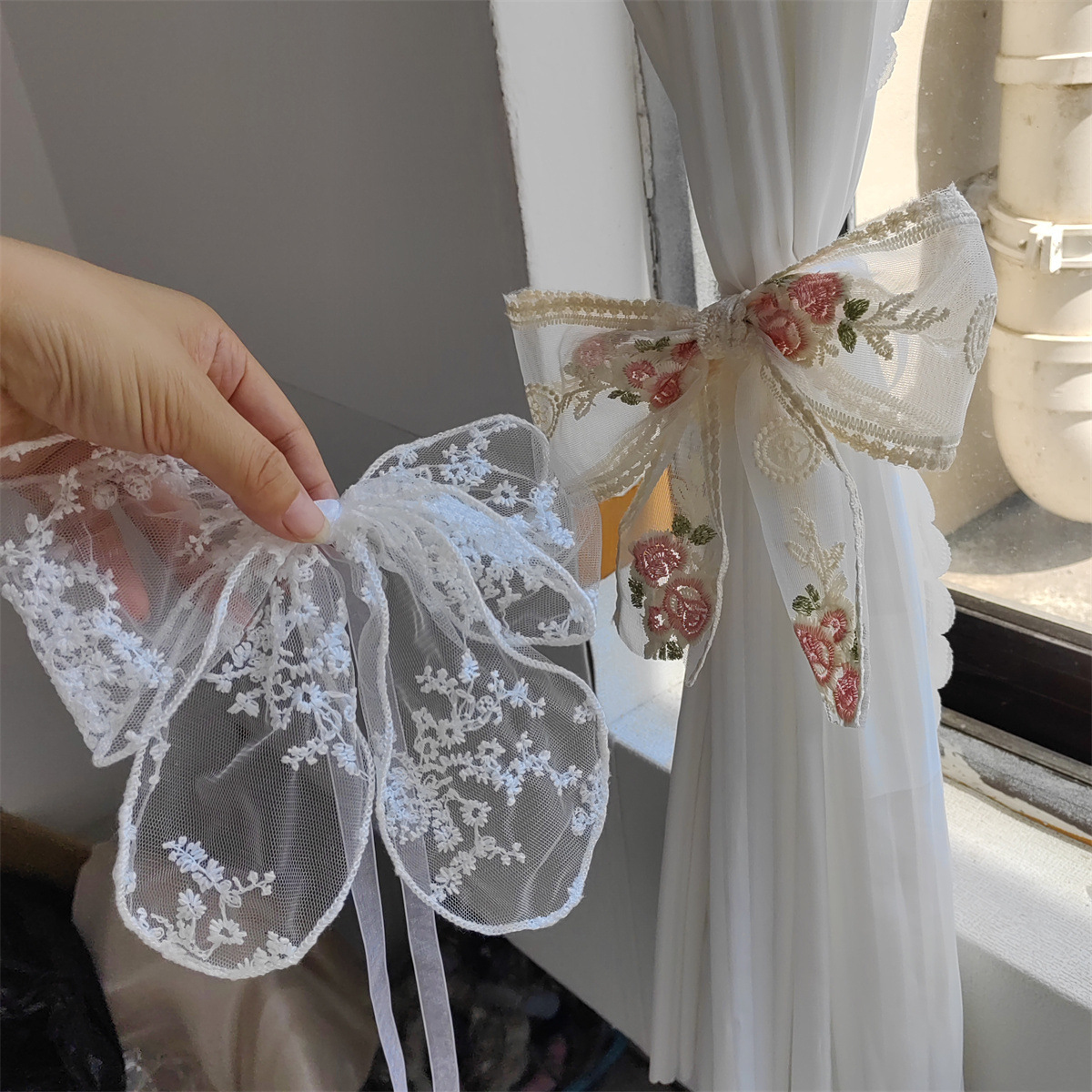Занавески кружевные банты легкие роскошные французские занавески пряжки корейские не совсем белые красивые пряжи