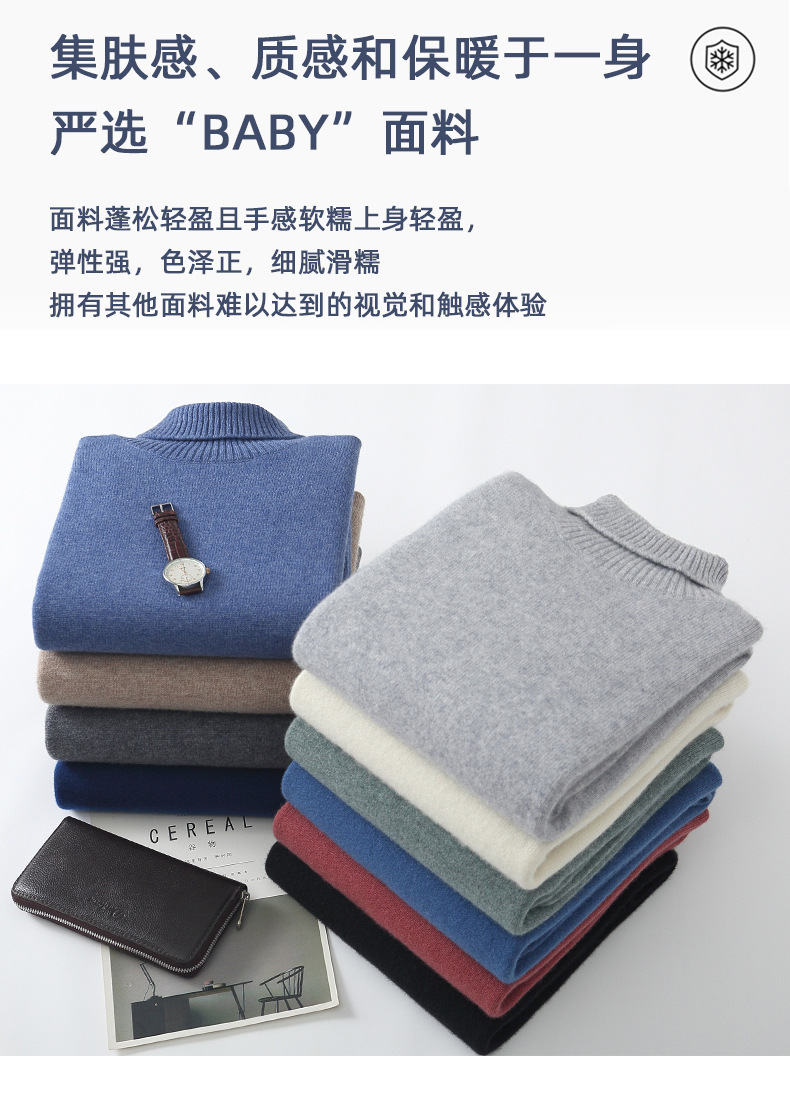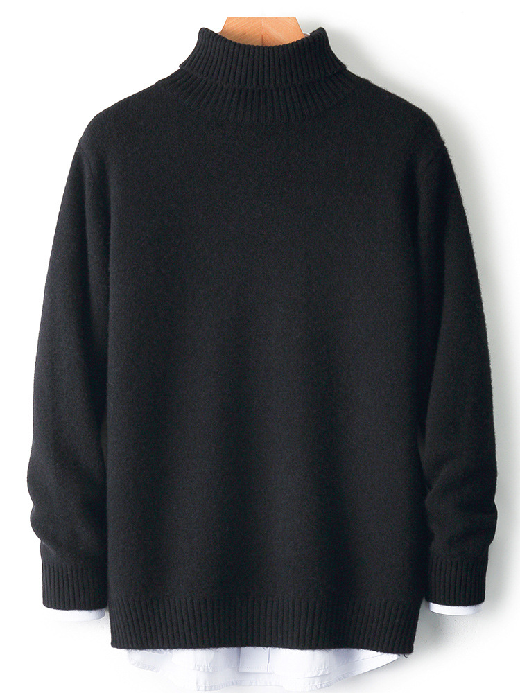 Осень и зима 100% шерстяной свитер мужской высокий отворот толстый свитер свободный повседневный молодежный вязаный джемпер большой размер