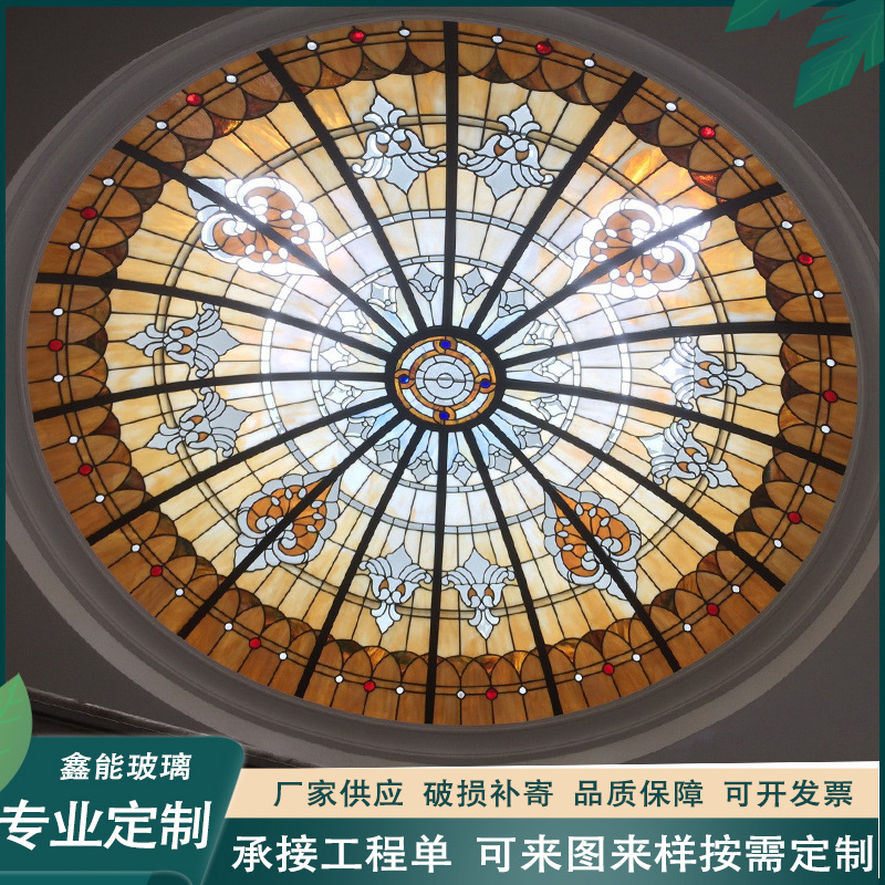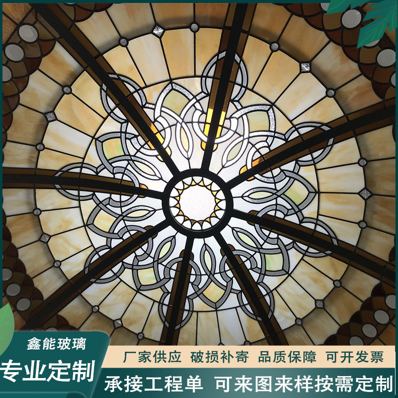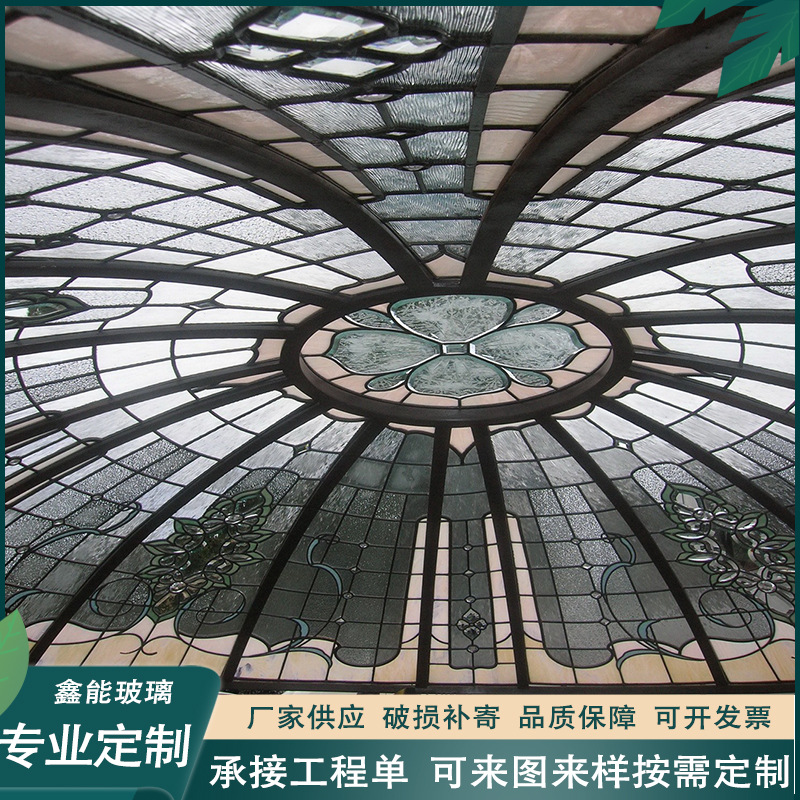 Проект купола из цветного стекла специальной формы для мечети, храма, церкви в стиле барокко с изогнутыми и сферическими элементами.