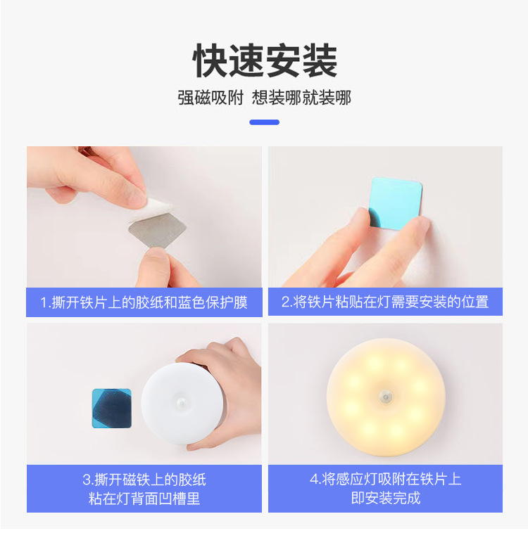 Экологичный ночник с датчиком движения, USB-зарядкой, для кормления грудью, для шкафов, гардеробов и коридоров, с магнитным креплением, сверхъяркий.