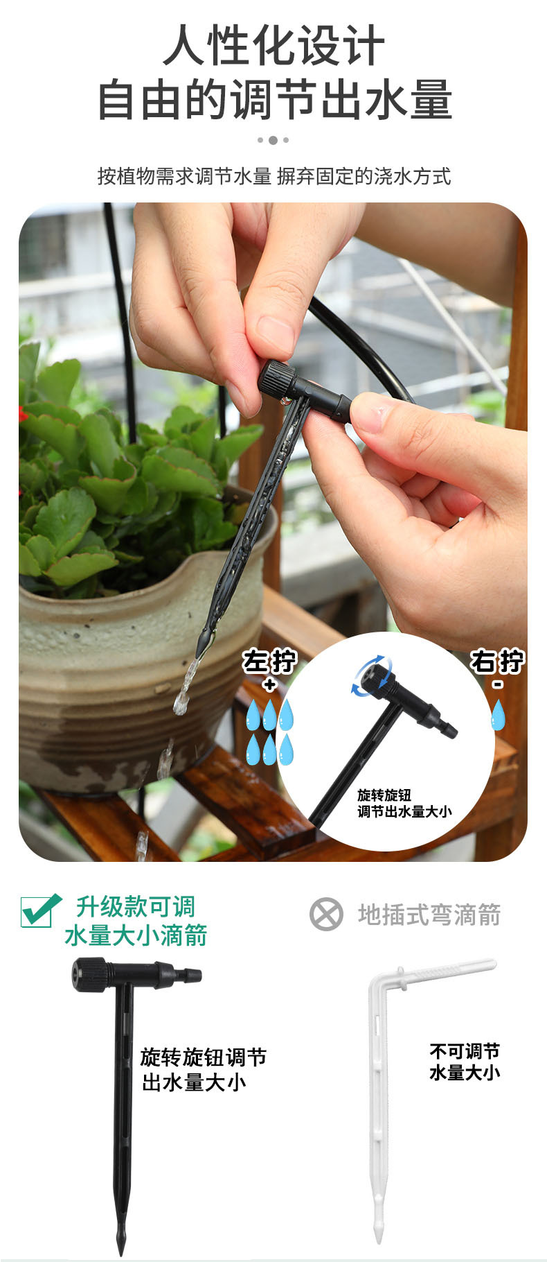 Новое обновление Регулируемый объем воды капли стрелы капельного полива Контроллер потока полива капельного полива капельного устройства капельного водоочистителя