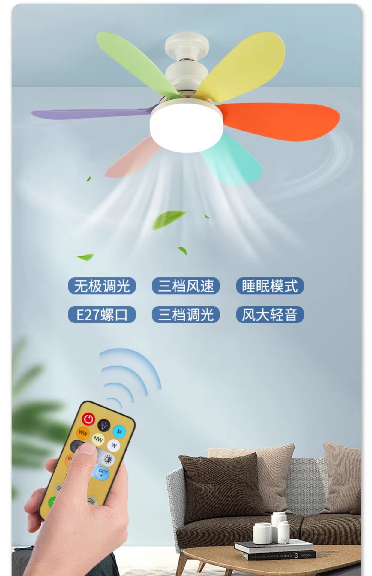 Светодиодный цветочный вентилятор-30W трехцветный переменный свет-с дистанционным управлением; Светодиодный цветочный вентилятор-40W трехцветный переменный свет-с дистанционным управлением; 30W сплит-универсальный пульт дистанционного управления вентилятор-белый; 30W сплит-универсальный пульт дистанционного управления вентилятор-желтый