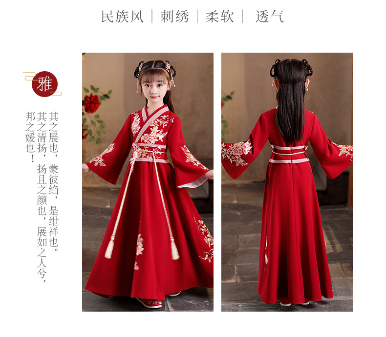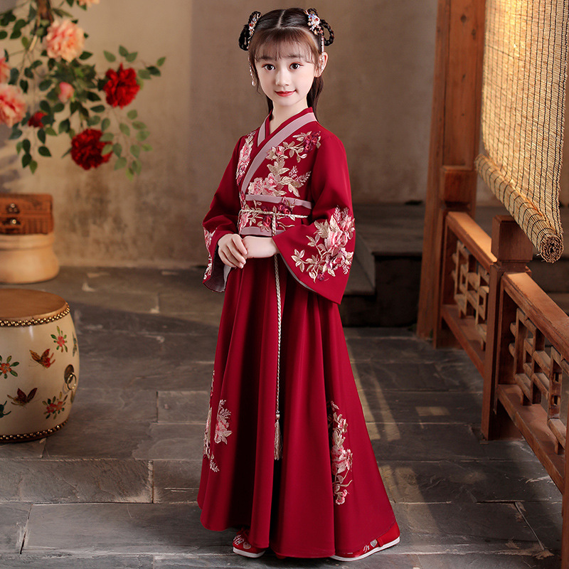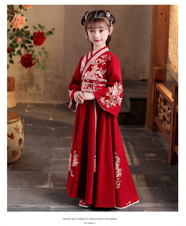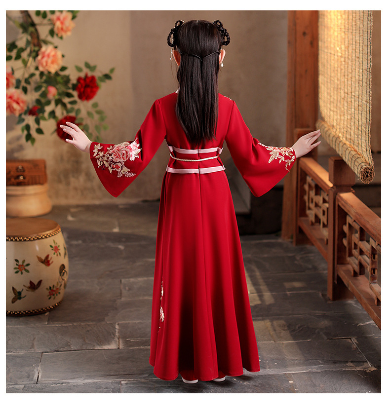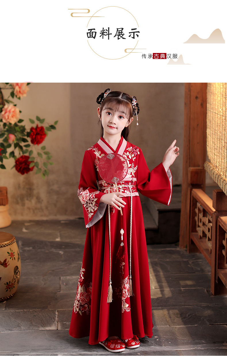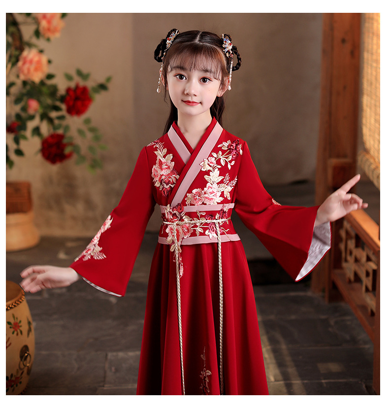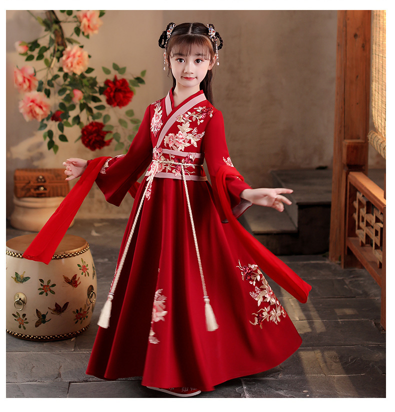 Детский костюм Ханфу 2025 года, новый стиль, традиционный китайский стиль, длинный рукав, осенний наряд для девочек постарше в древнем стиле.