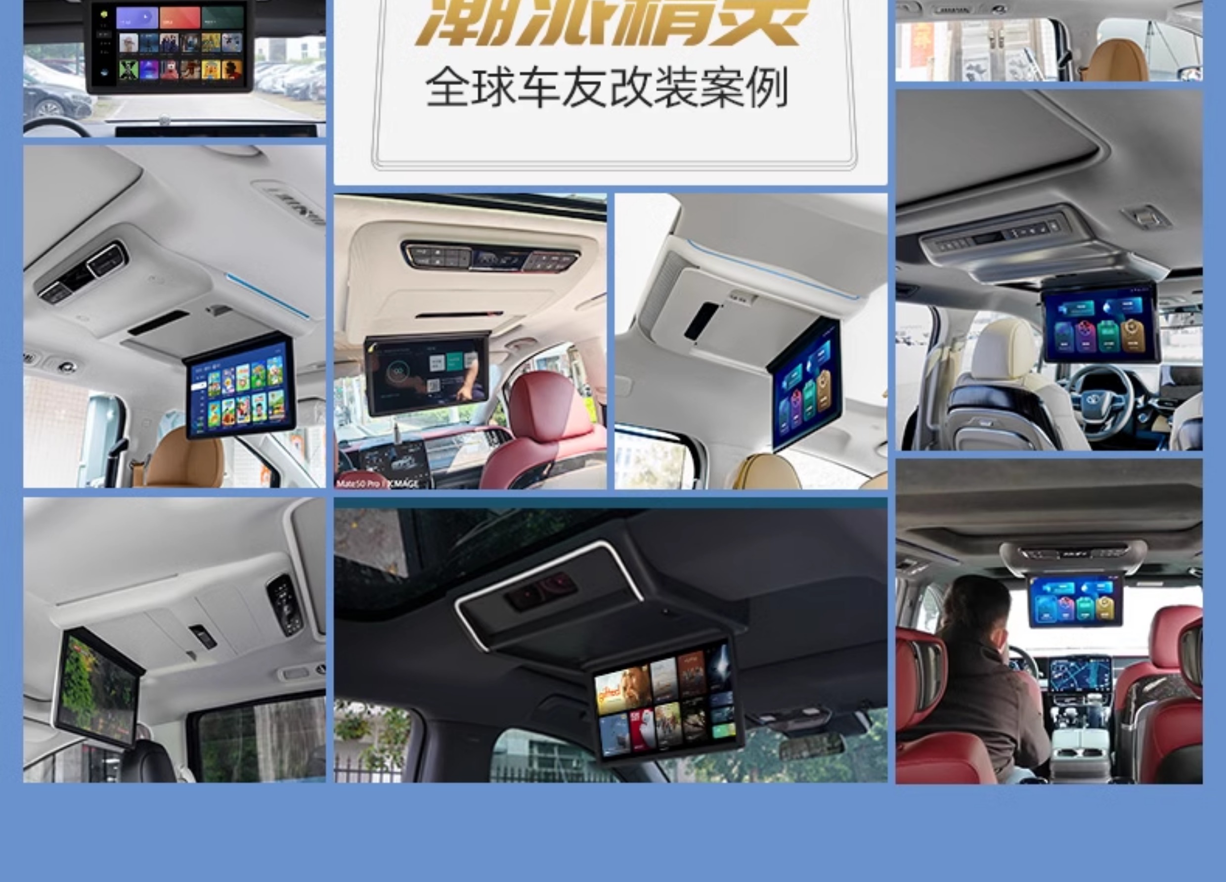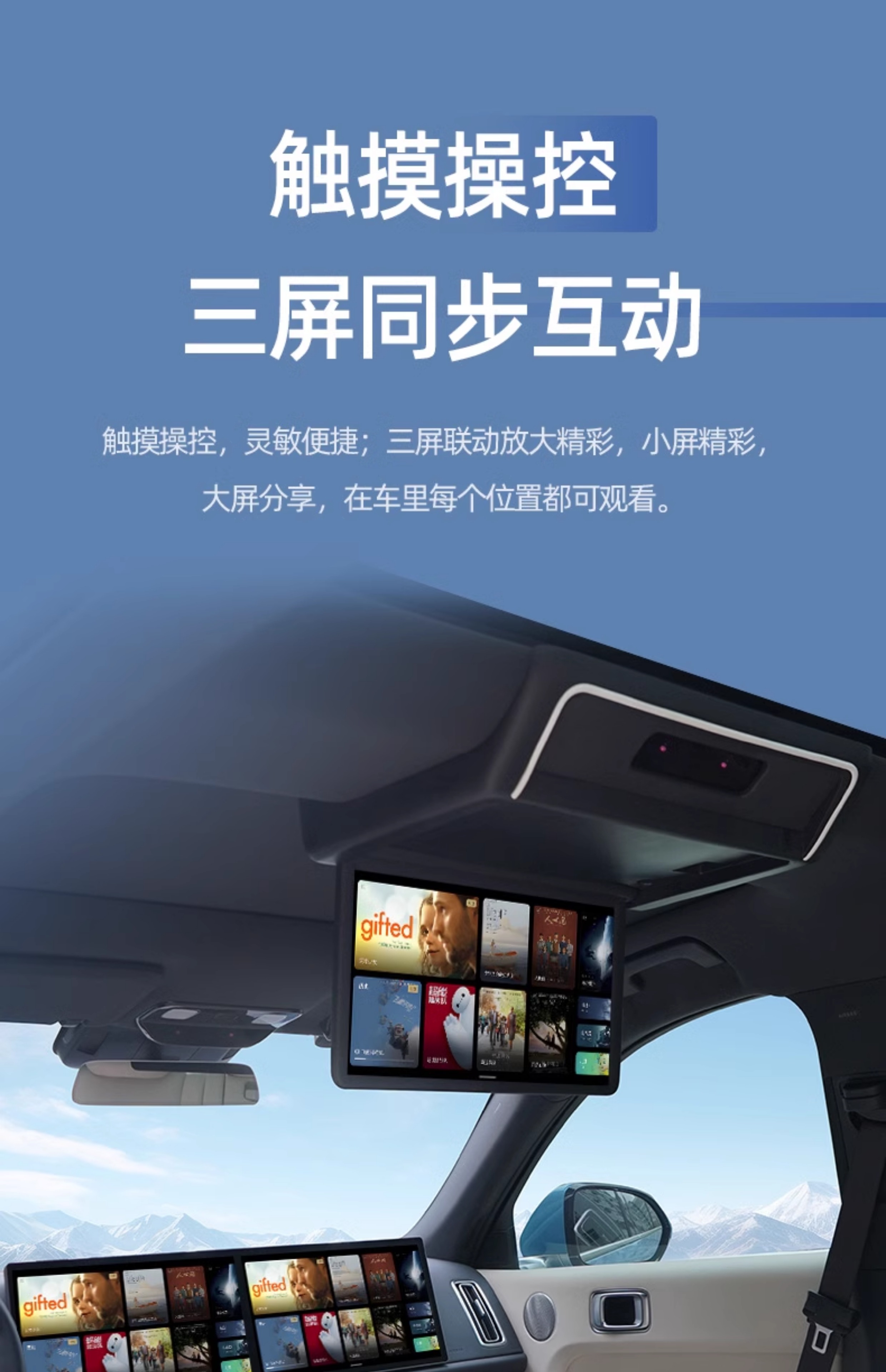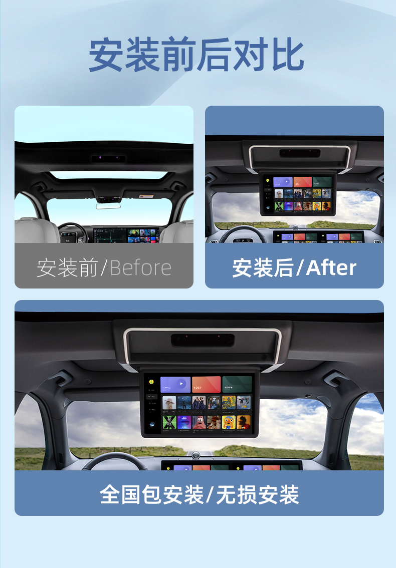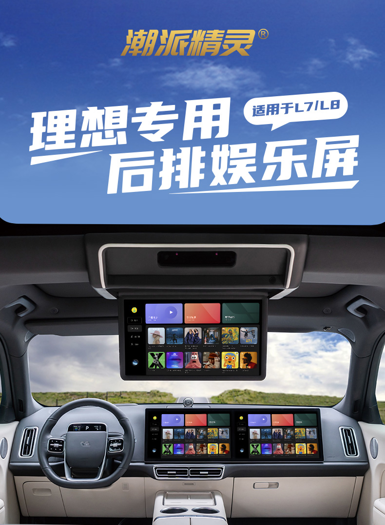 Новый модный эльф 24 идеального L7/L8 выделенный задний развлекательный экран с тремя экранами подключенного автомобильного потолка