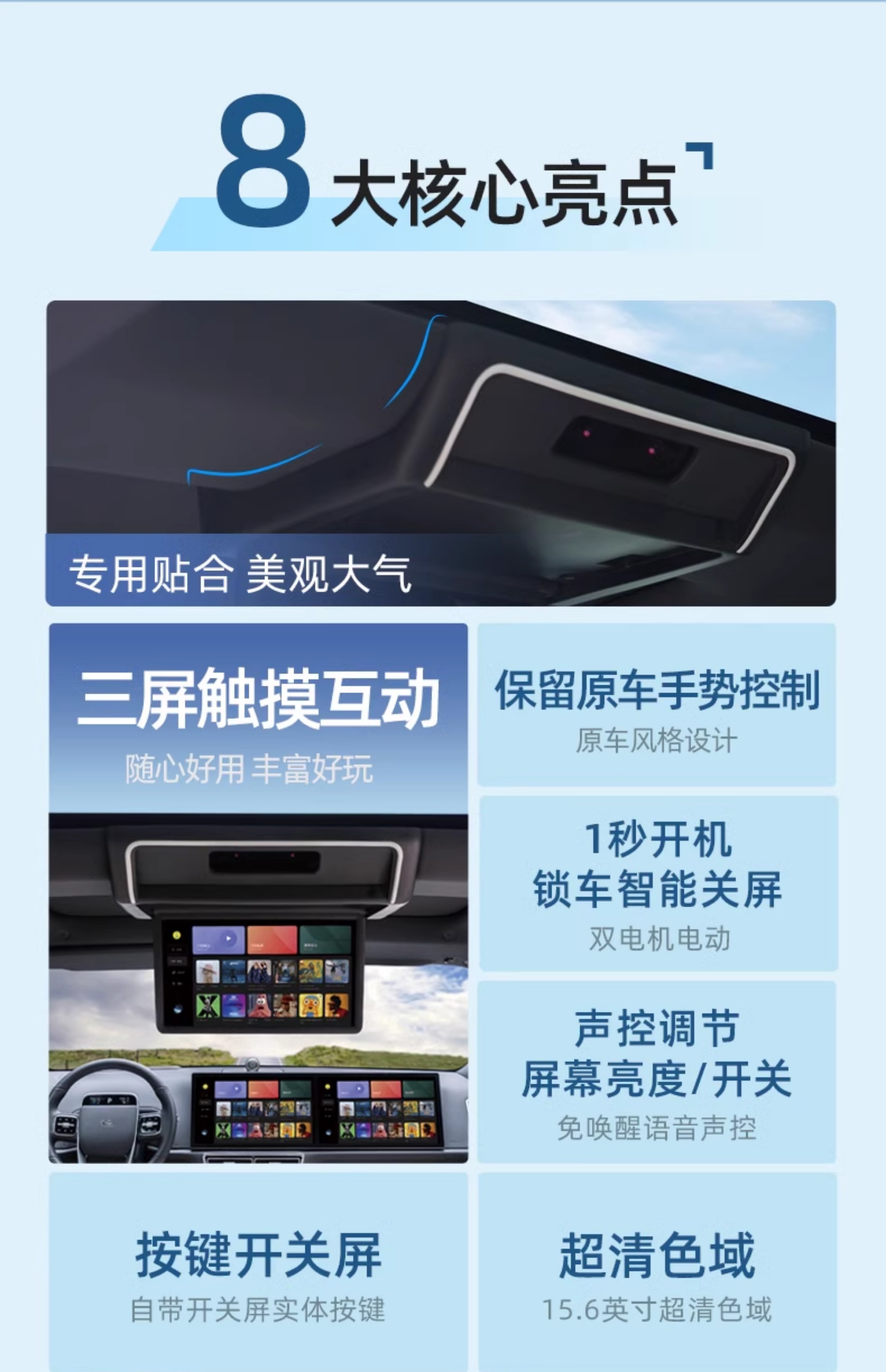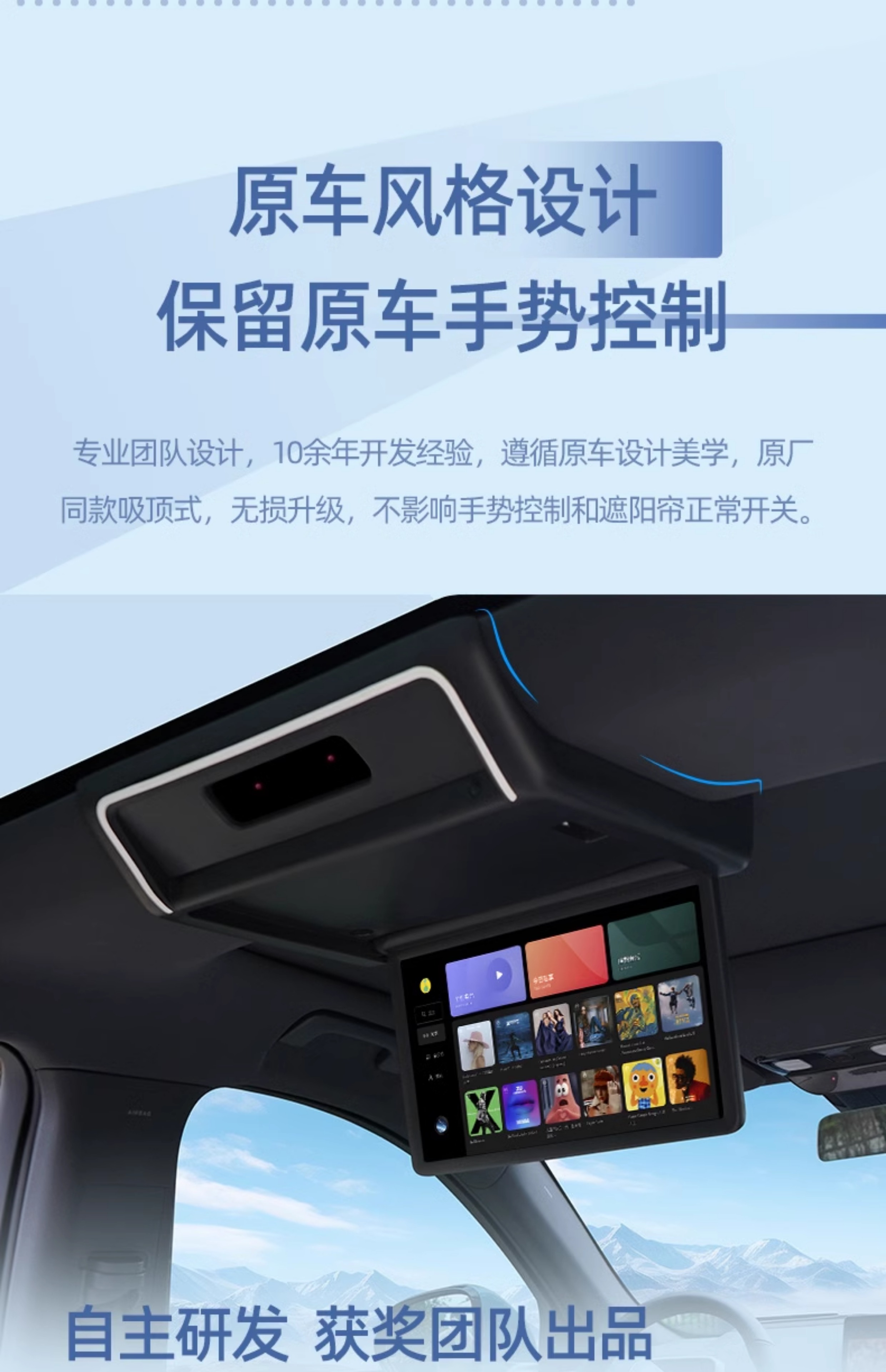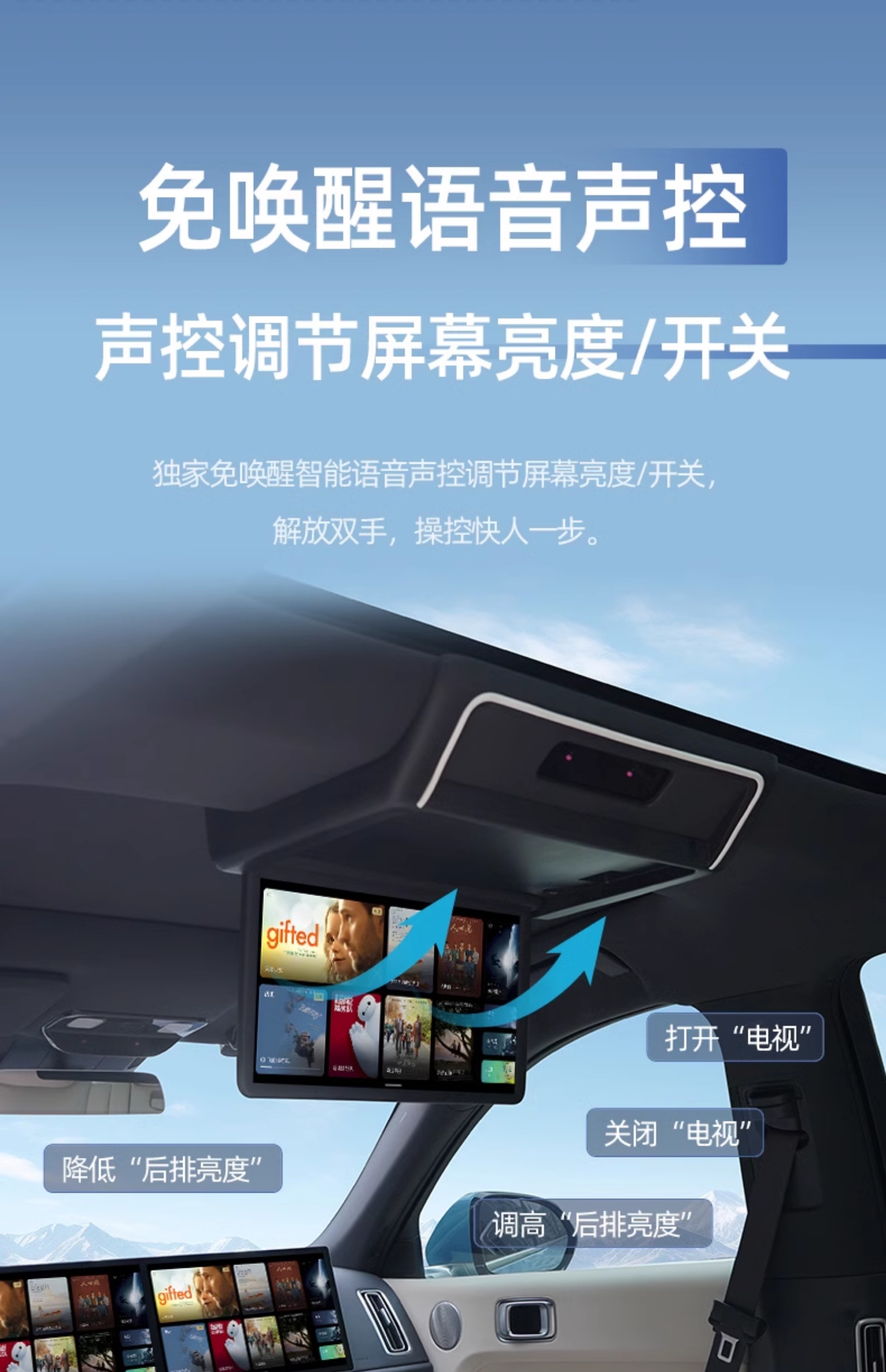 Новый модный эльф 24 идеального L7/L8 выделенный задний развлекательный экран с тремя экранами подключенного автомобильного потолка